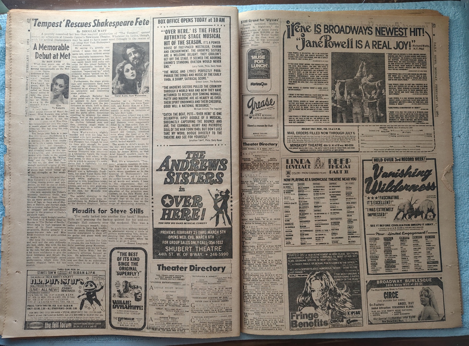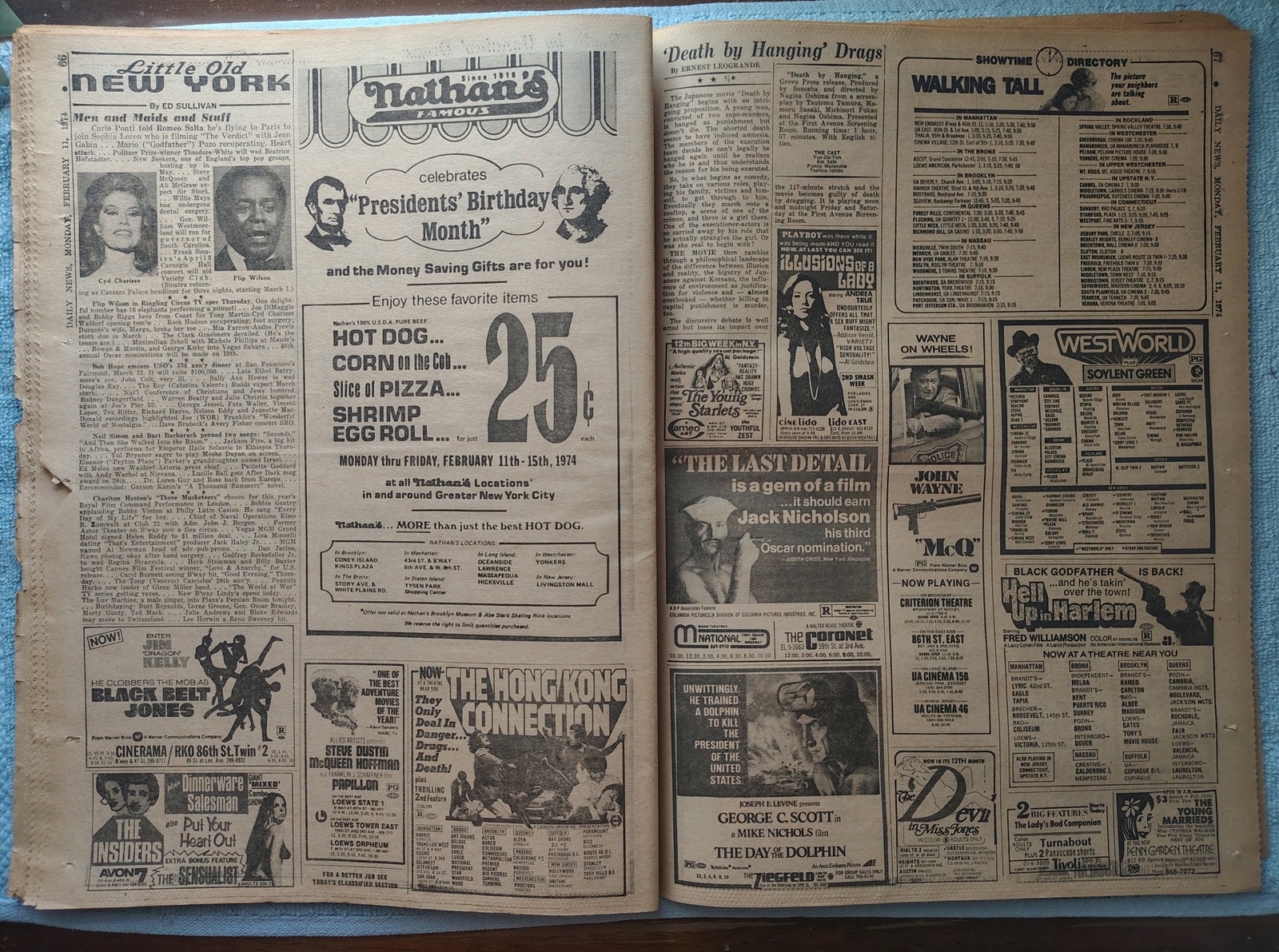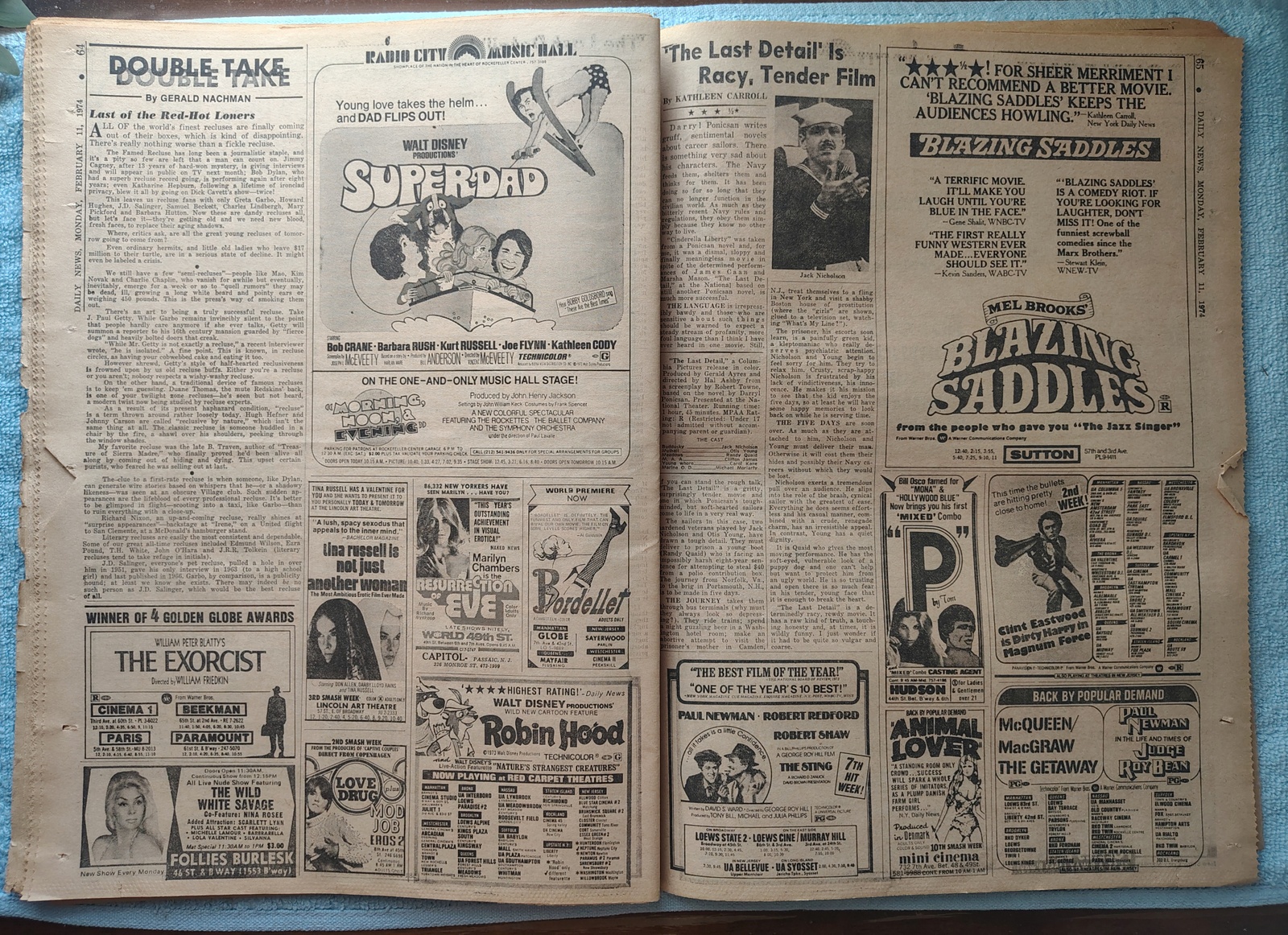 - Movie ads include: Vanishing Wilderness, The Exorcist, Magnum Force with Dirty Harry, Blazing Saddles, and more.