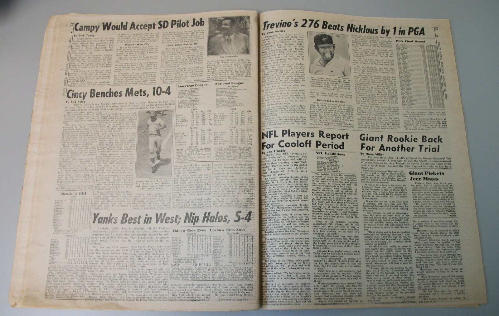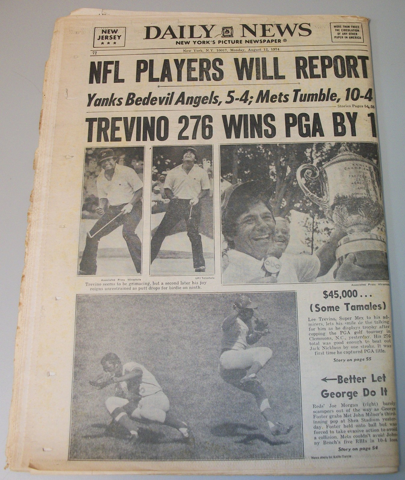 - The back page features coverage of Lee Trevino winning the PGA tournament in Clemmons, NC.