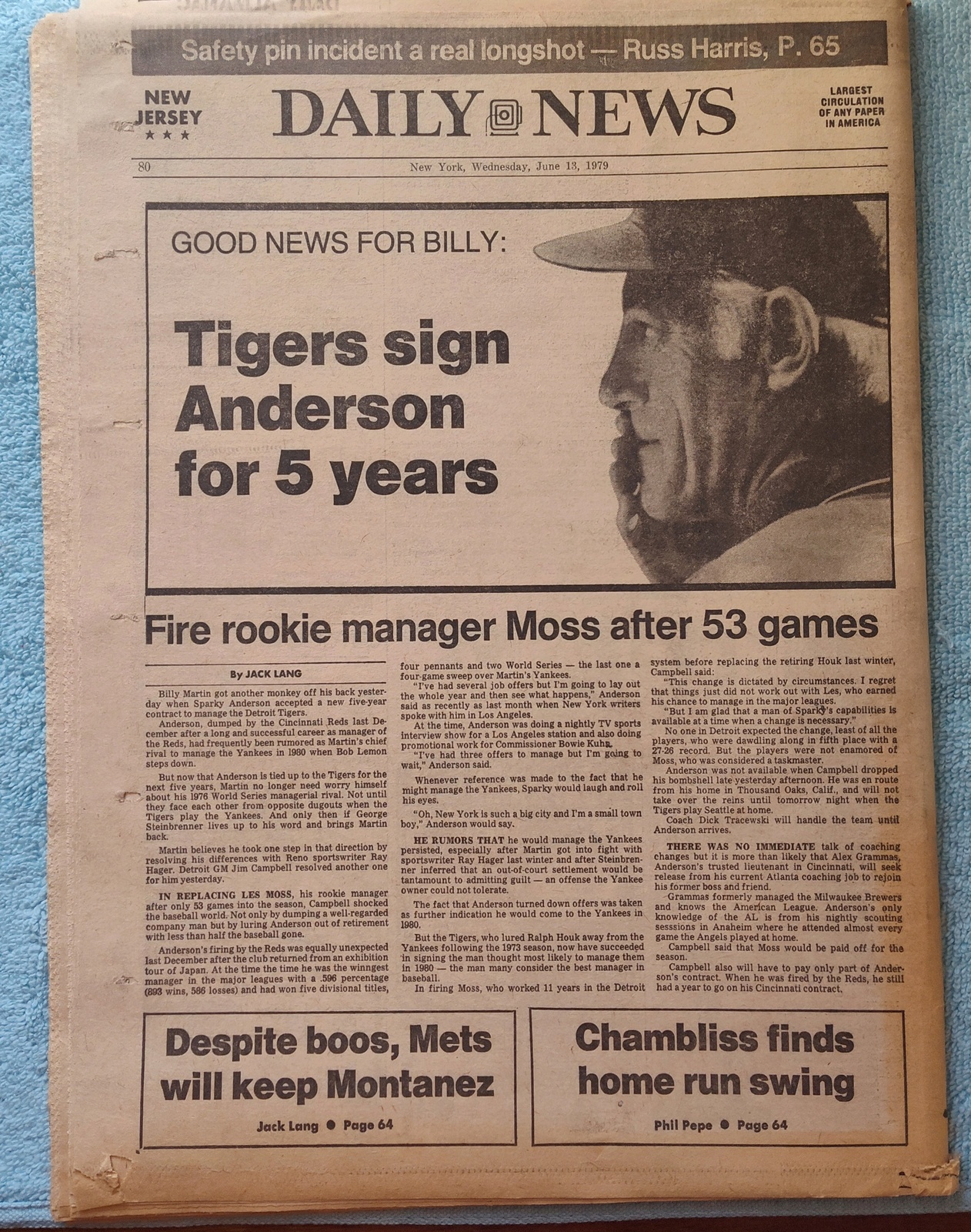 - The back page features an article about Billy Martin possibly returning to the Yankees.