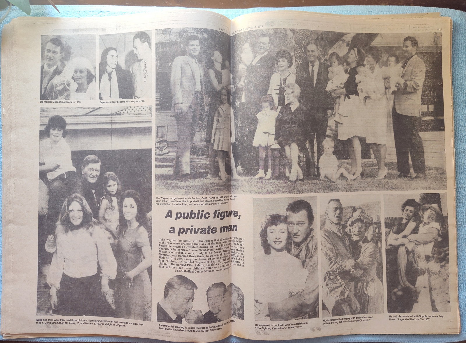 - ‘L.A. lowers the Duke’s flag’ – Lots of articles and pictures of the late film star, John Wayne.