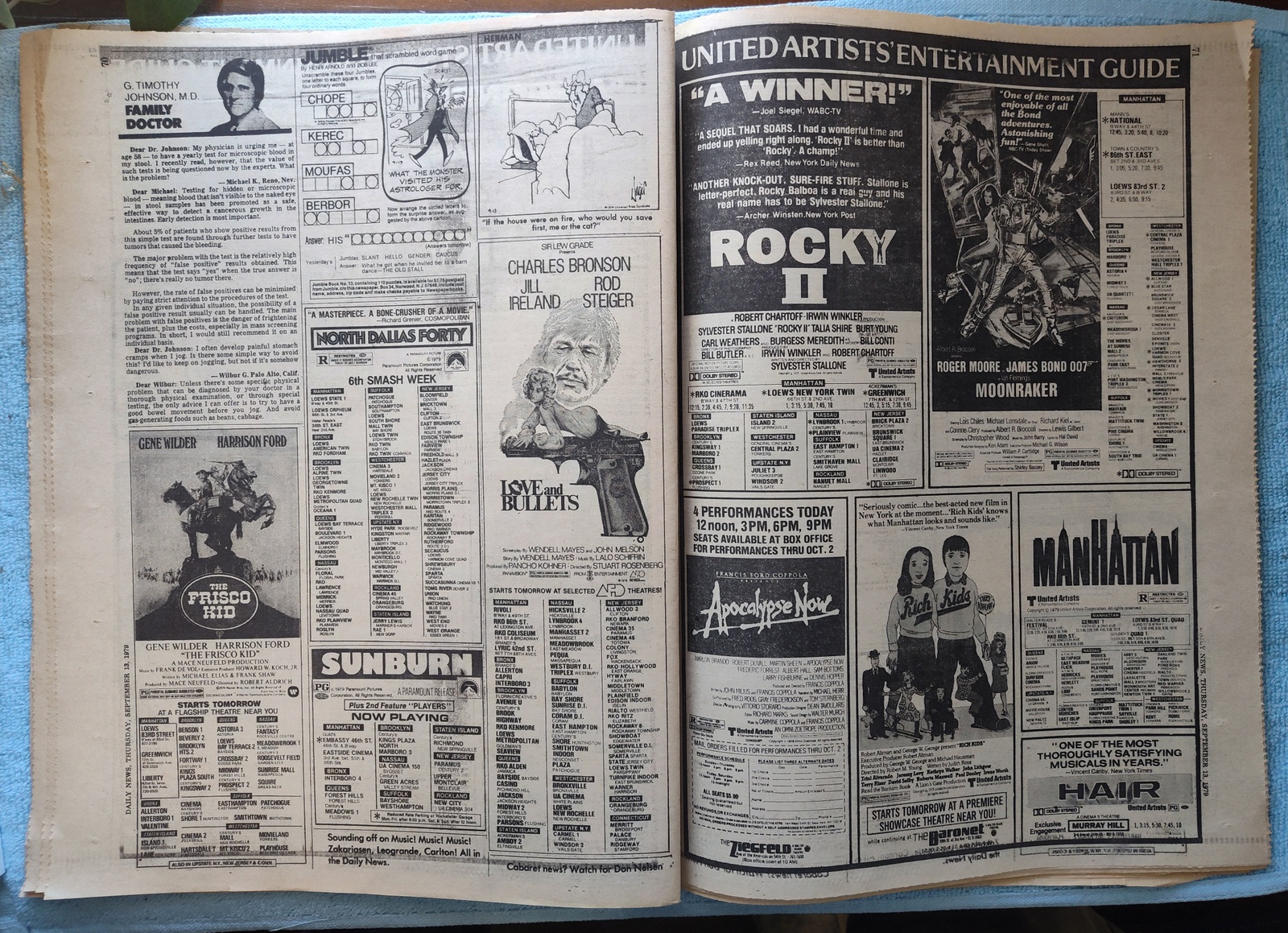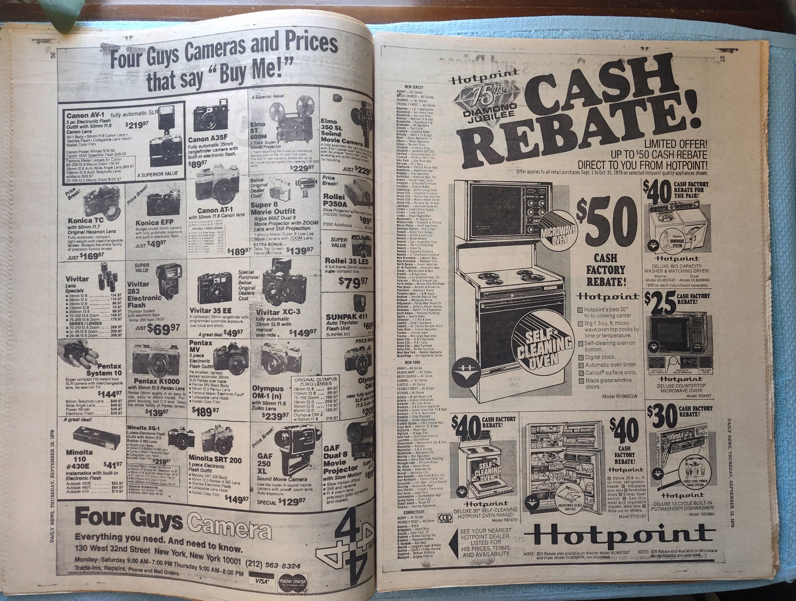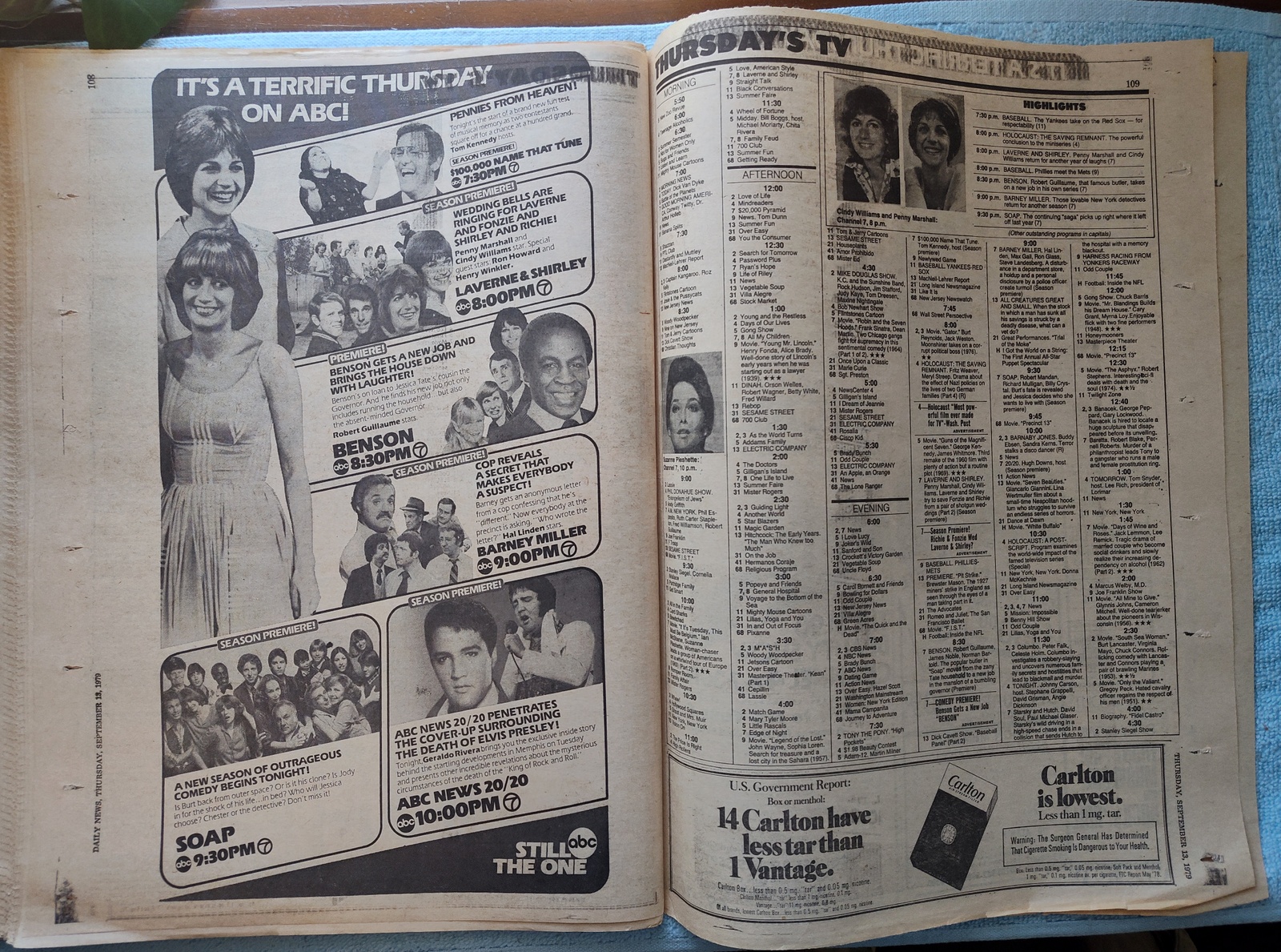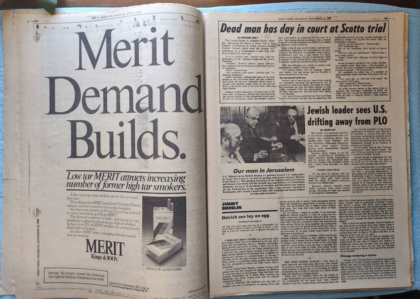 New York Daily News – Thursday, September 13, 1979. This old newspaper features on the front page a picture of President Carter wiping his brow at a speech in Hartford. The headline is: ‘Bandit Shot In 183G Bank Job’ and ‘Koch rips sanit boss on litter’ – What you see in the pictures is what you get.