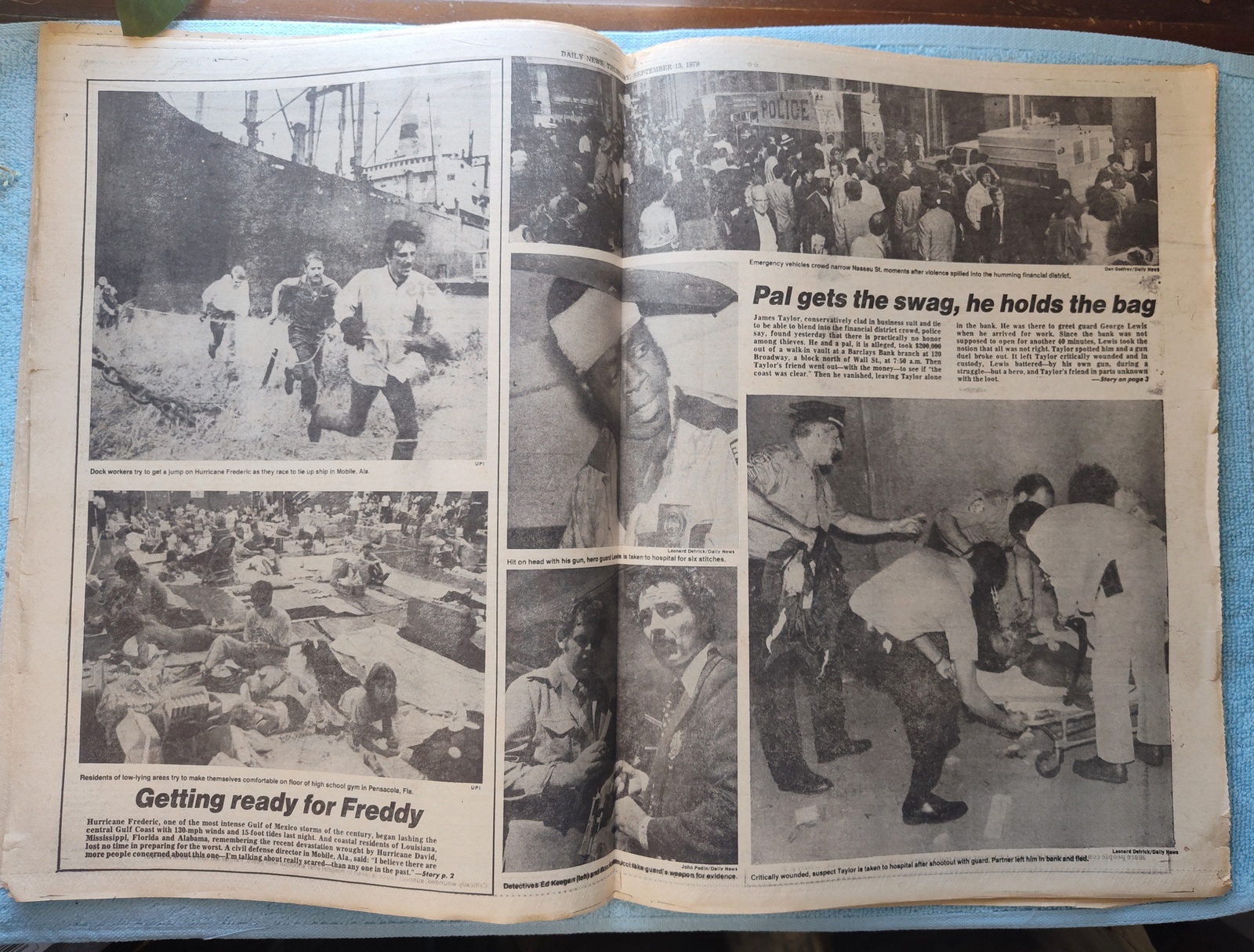 - The centerfold has several pictures of preparations for the arrival of Hurricane Frederick on the Gulf Coast and pictures of the aftermath of the Barclays Bank robbery.
