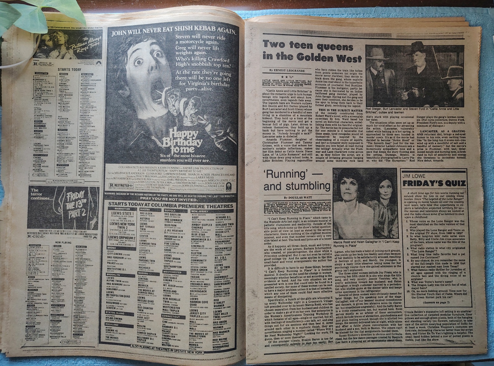 - Movie ads include: Happy Birthday to Me, Friday The 13th Part 2, Ms.45, Stir Crazy, and more!