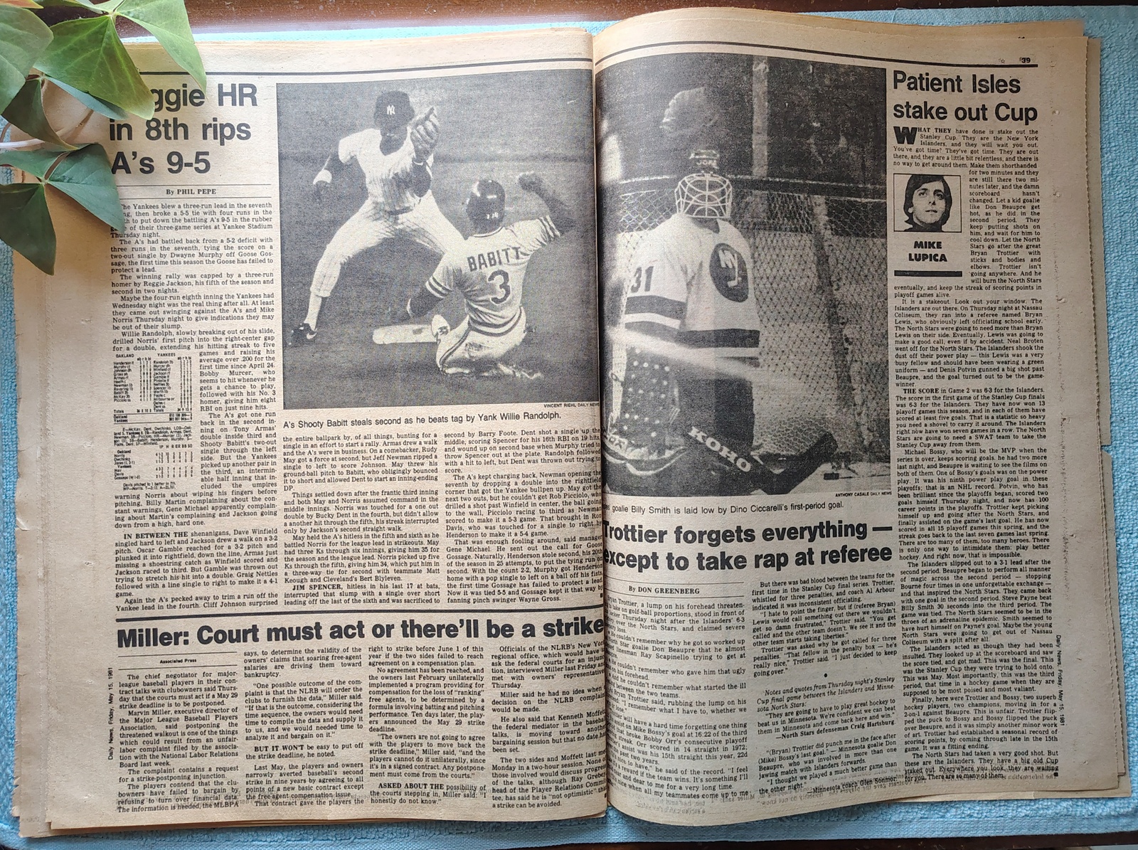 - The back page features a picture of the Islander professional hockey action with the headline of ‘Celtics win 14th crown 102-91’