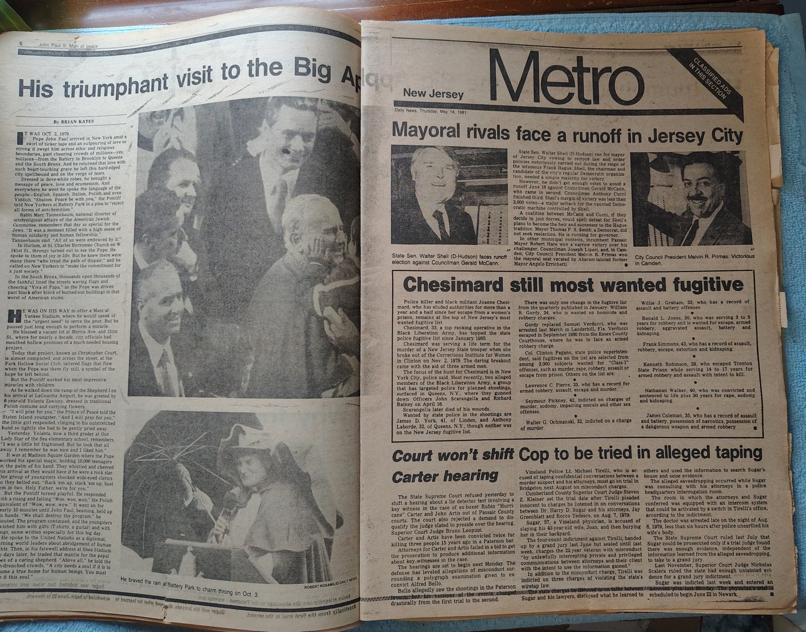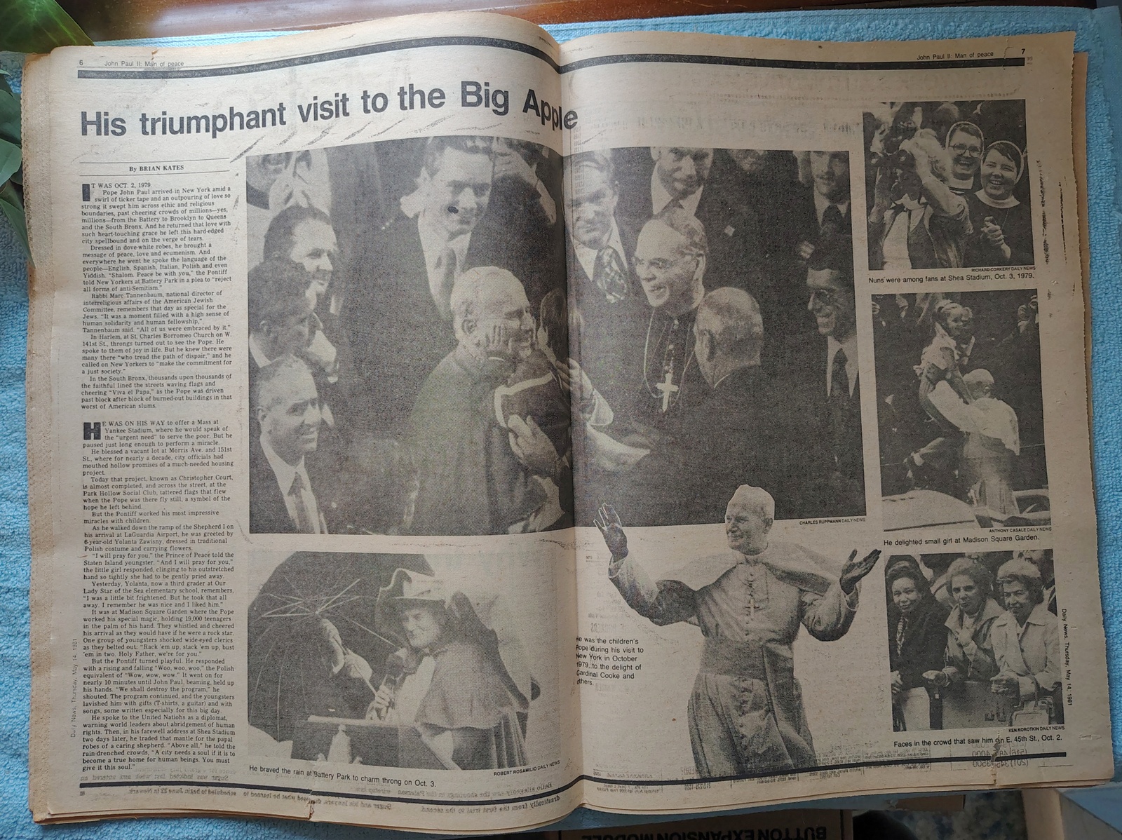 - The centerfold has pictures from the Pope’s visit in October of 1979 to New York.