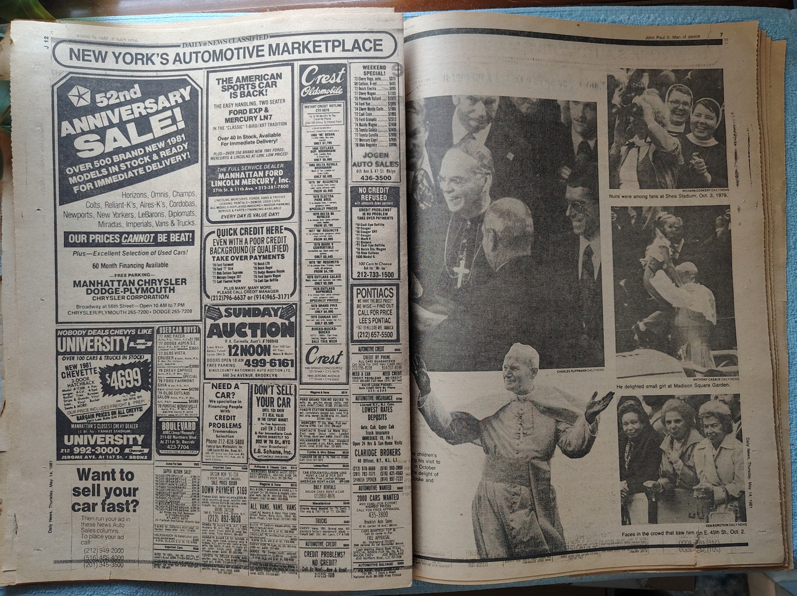 Excellent condition for a newspaper from 1981! Some minor discoloration, wear and tear around the edges. All 128 pages are included, plus the Style, John Paul II, and NJ Metro inserts – LOOK AT THE PICTURES!