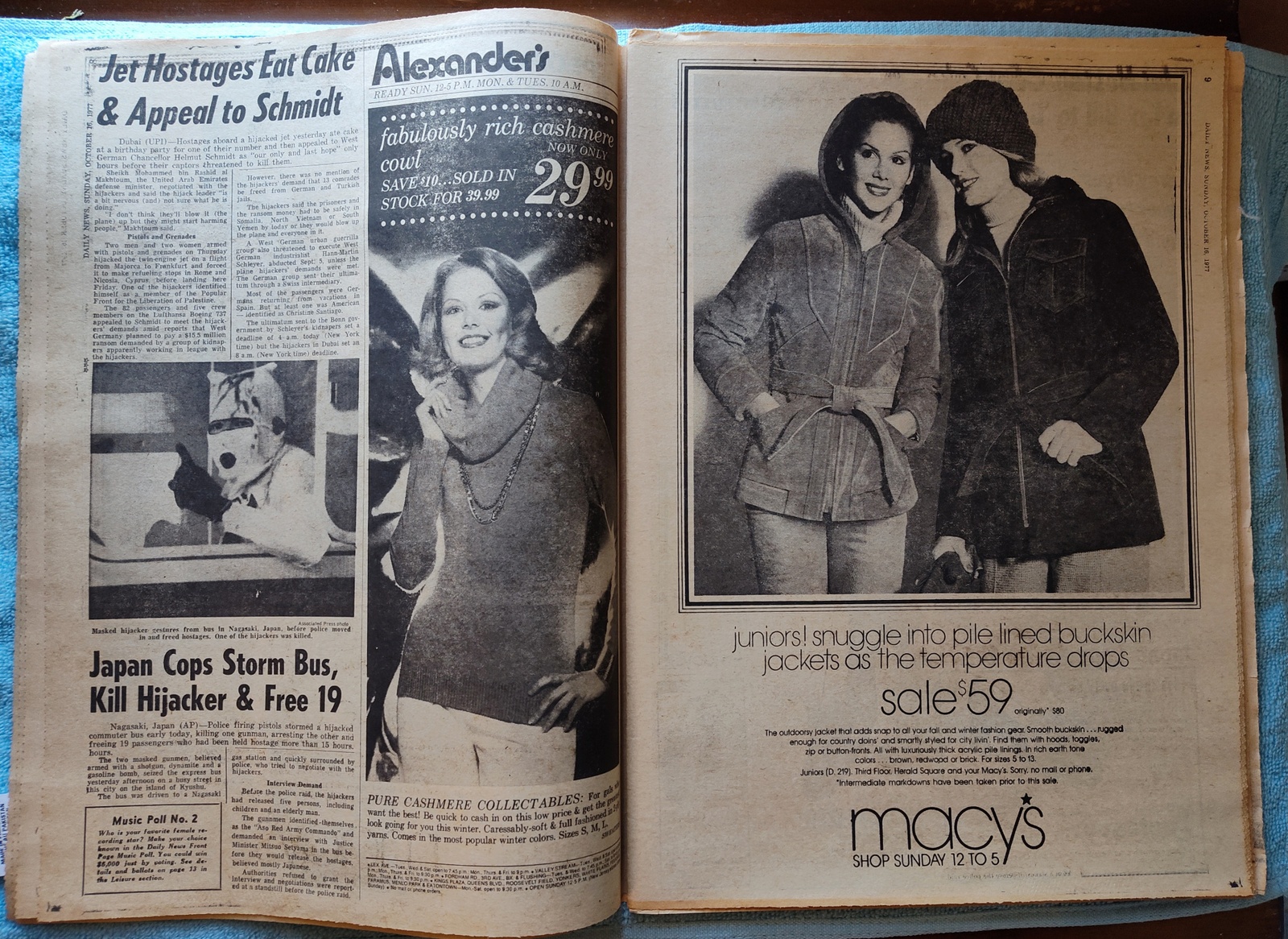 - ‘Jet Hostages Eat Cake & Appeal to Schmidt’ – Hostages aboard a Lufthansa flight hijacked by the Popular Front for the Liberation of Palestine have birthday cake