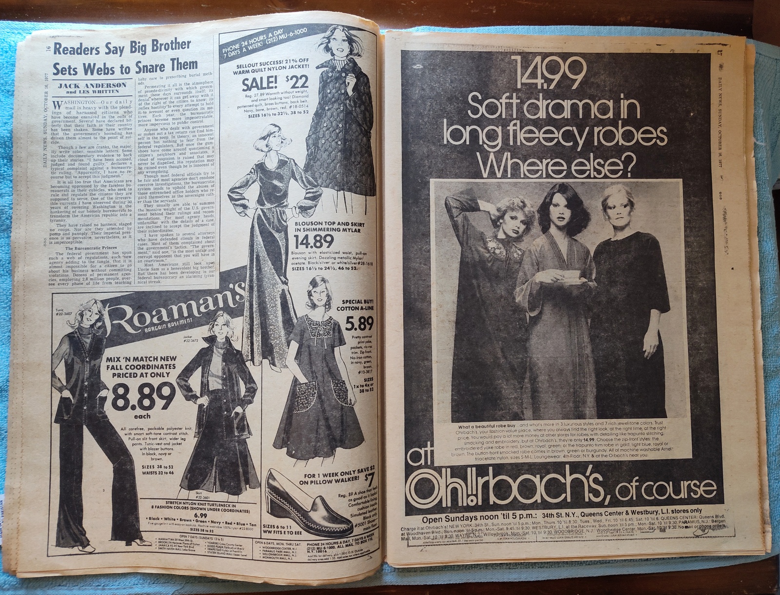 - Lots of ads for great 1970’s fashions – including your grandmother’s couch.