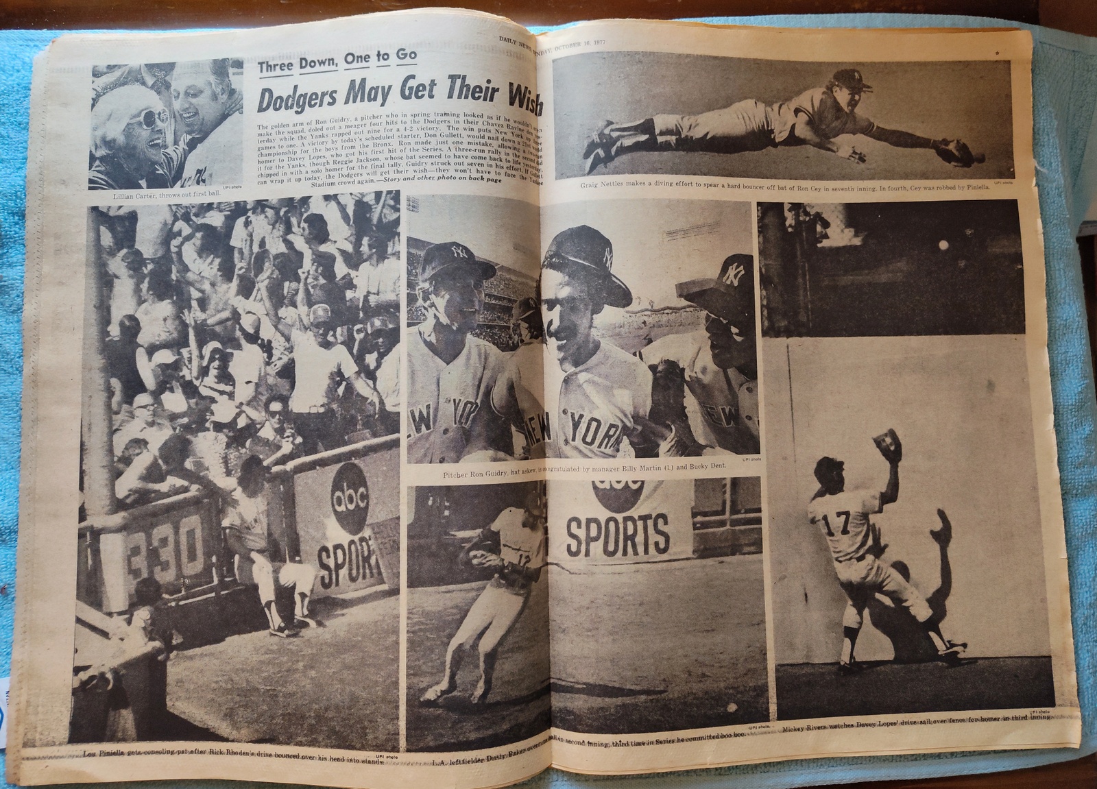 - The centerfold has several pictures of the 4th game of the 1977 World Series where the Yankees beat the Dodgers 4-2