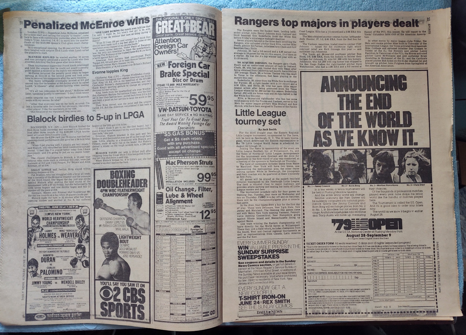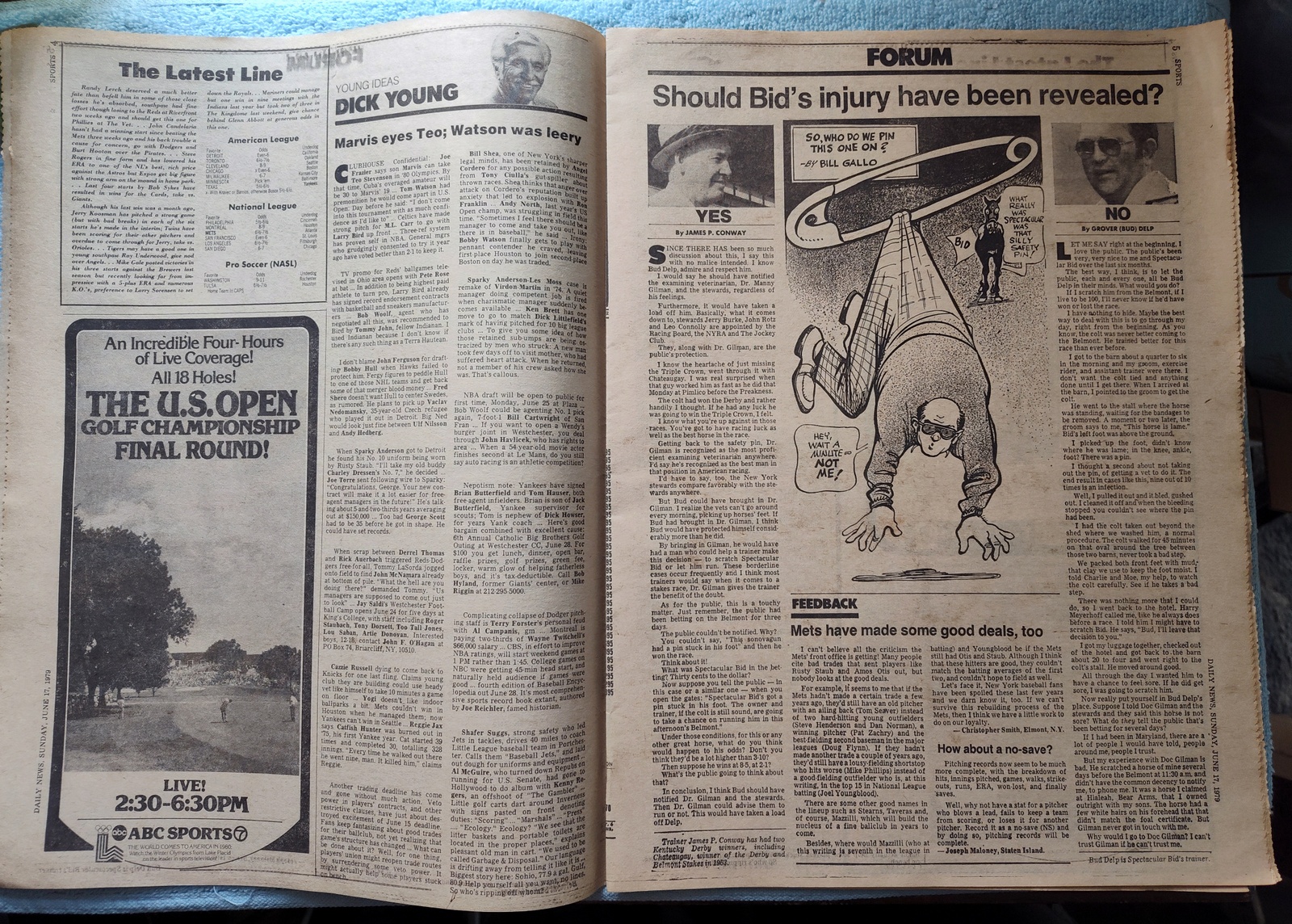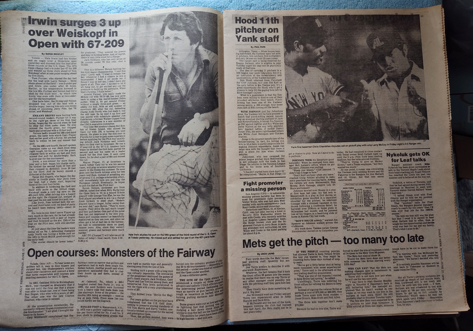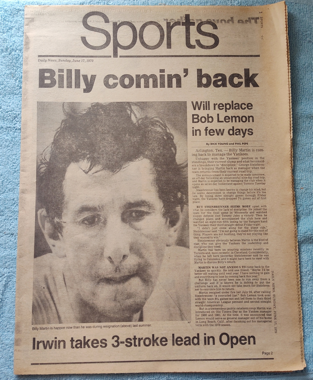 New York Daily News – Sunday, June 17, 1979. Sports section only! This old newspaper features on the front page (of the sports section) a picture of Billy Martin. The headline is: ‘Billy comin’ back’ and ‘Will replace Bob Lemon in few days’ What you see in the pictures is what you get.