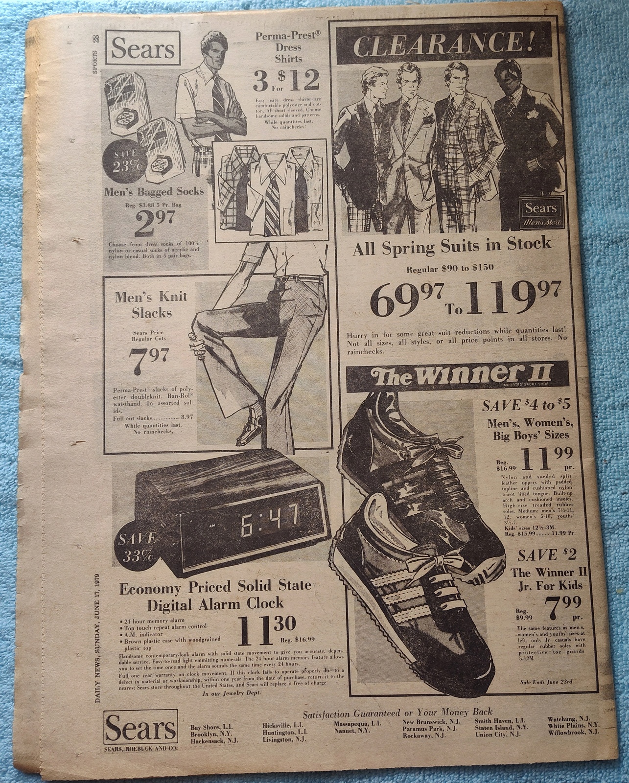 - The back page features a Sears advertisement – Men’s knit Slacks for only $7.97.