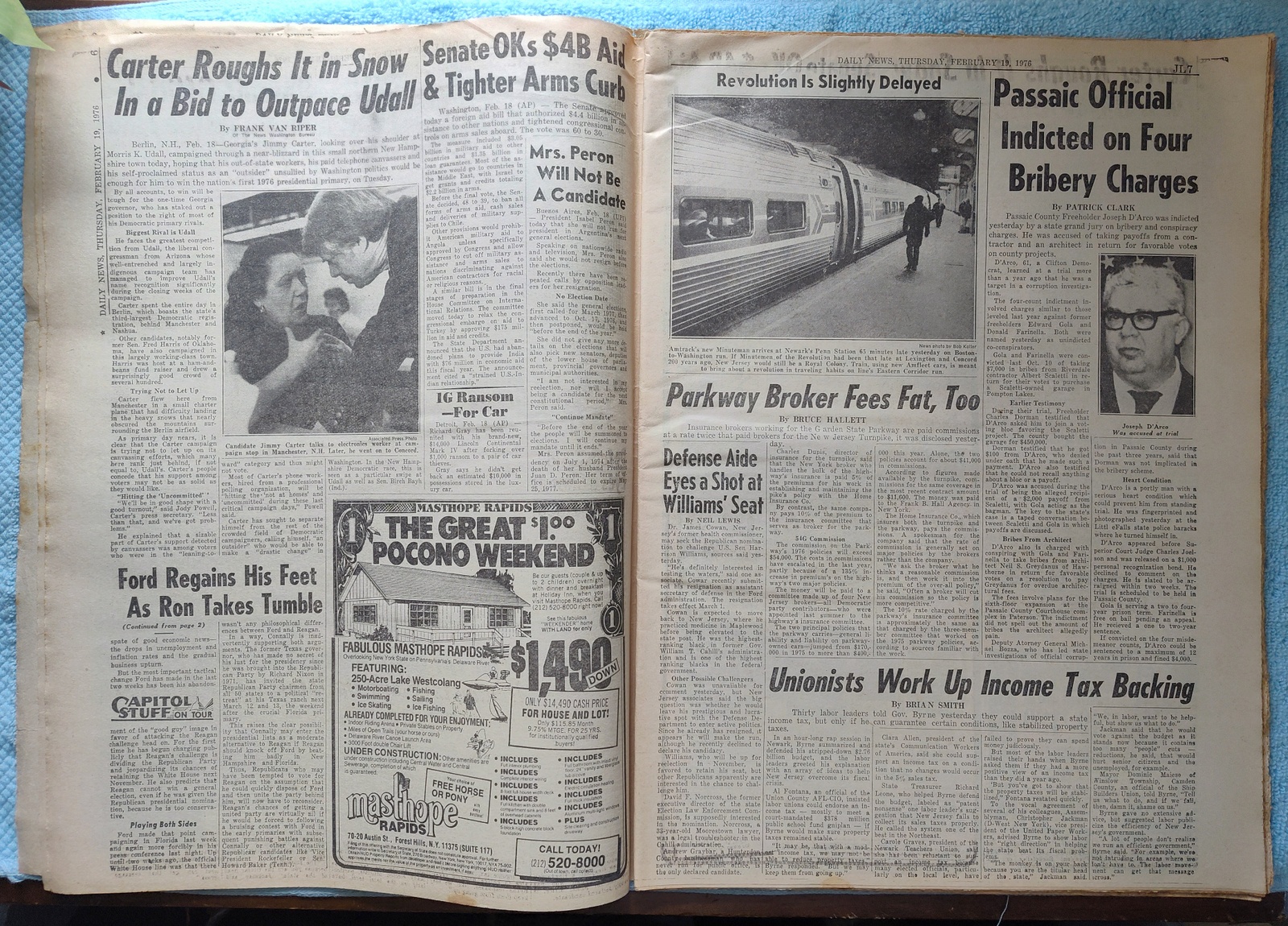- ‘Ford Regains Feet as Reagan Stumbles’ – President Ford beat Ronald Reagan in the first presidential primary in New Hampshire