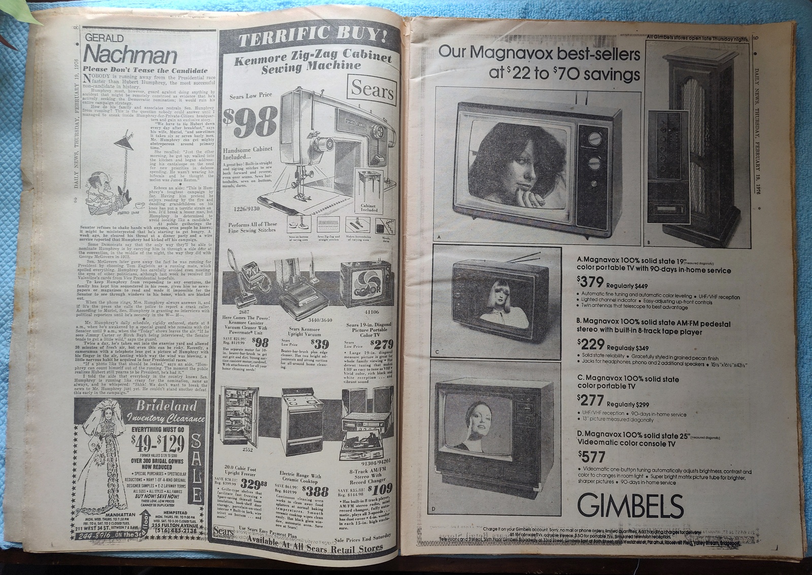 - Lots of ads for 1970’s electronics: Console TVs, 8-Track Players, cassette player/recorder, and more!