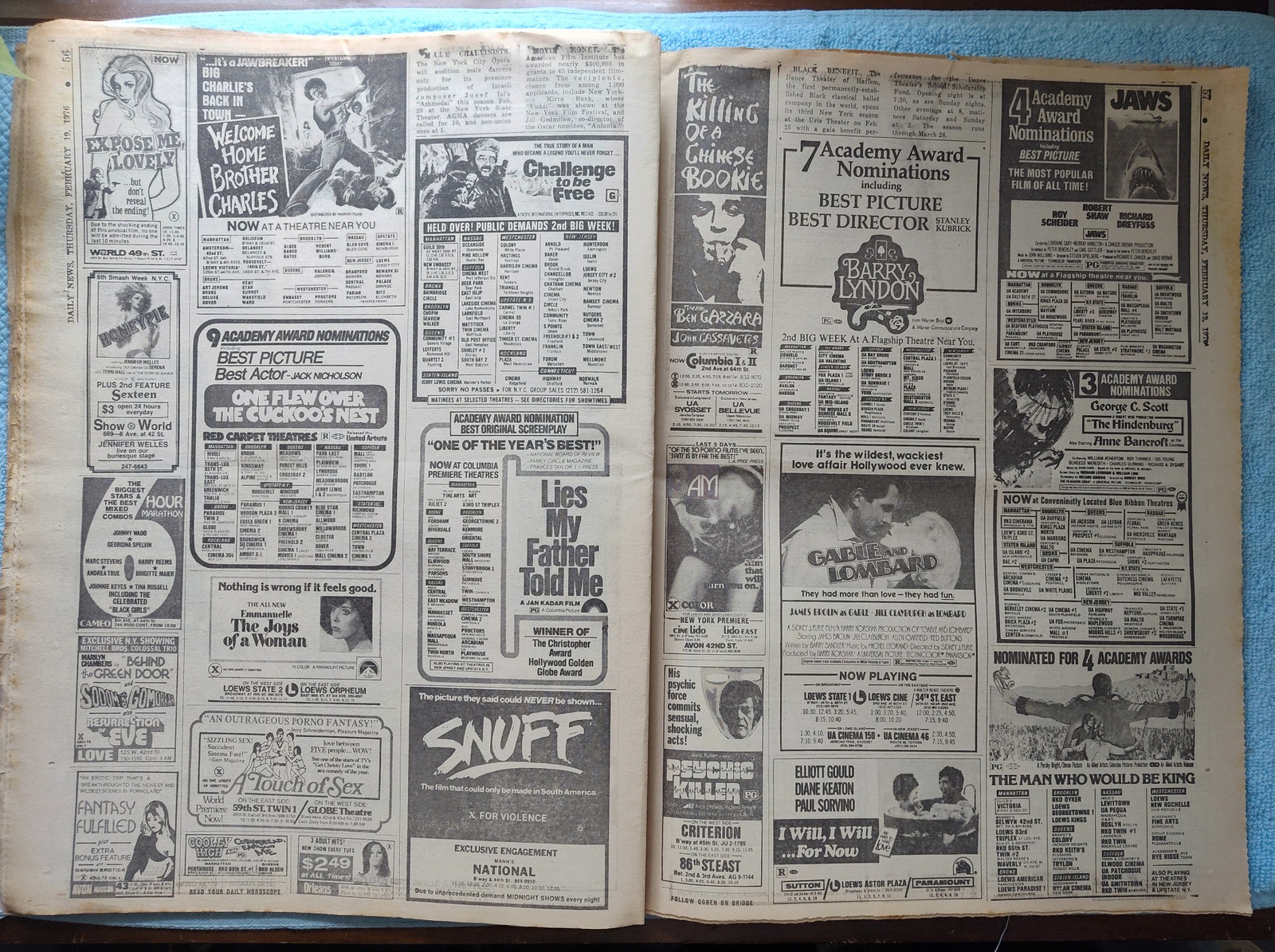 - Movie ads include: Jack Nicholson in One Flew Over The Cuckoo’s Nest, Barry Lyndon, The Man Who Would Be King, Jaws, and more!