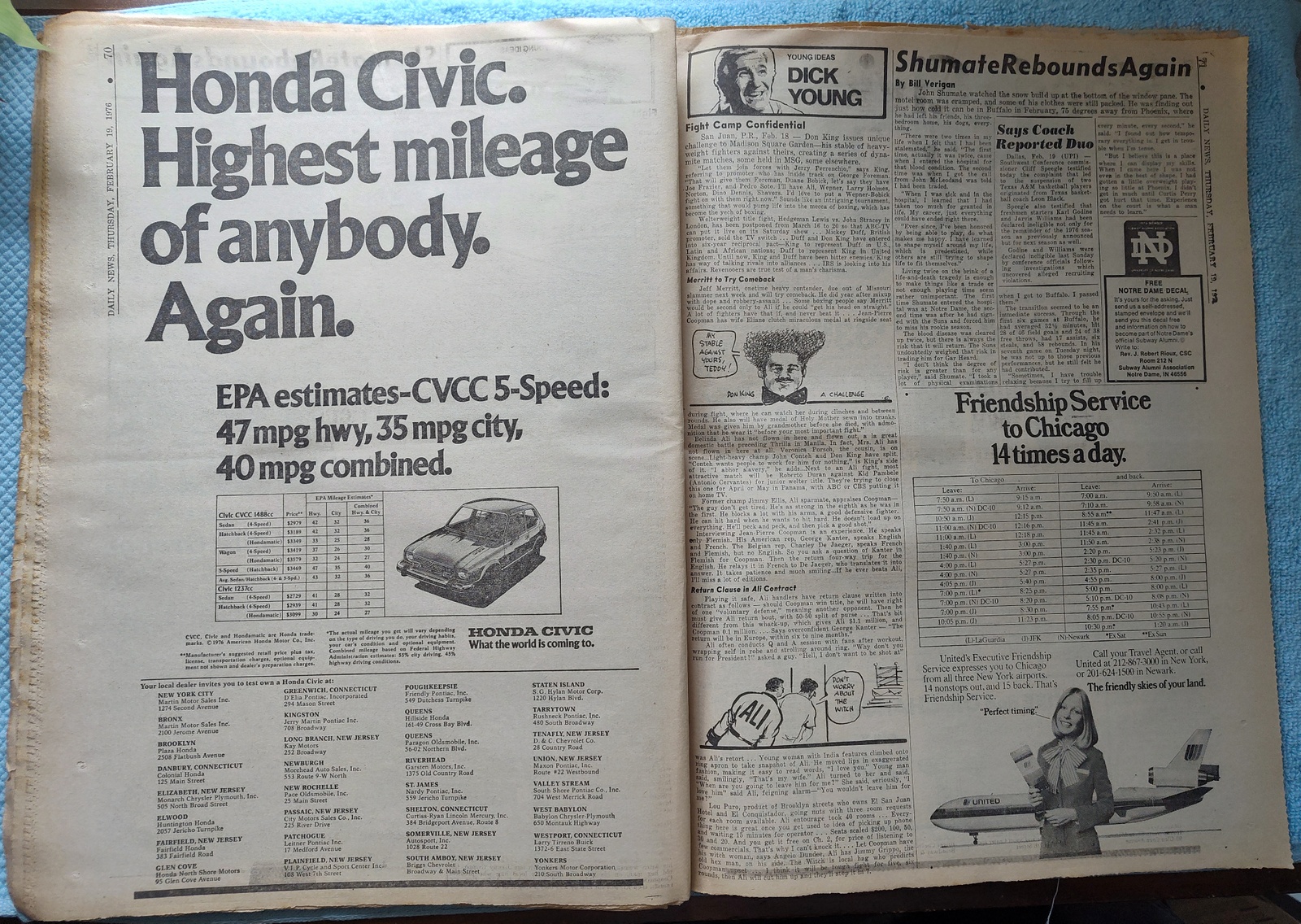 - A full page ad for Honda Civic – ‘Highest mileage of anybody. Again.’