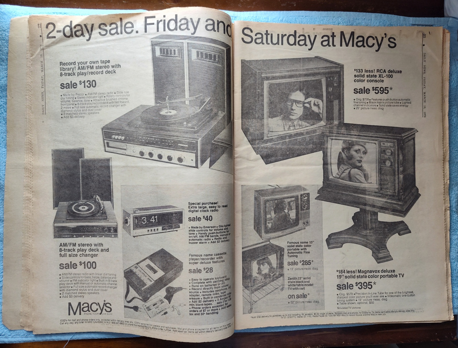 - Lots of ads for 1970’s electronics: Console TVs, 8-Track Players, cassette player/recorder, and more!