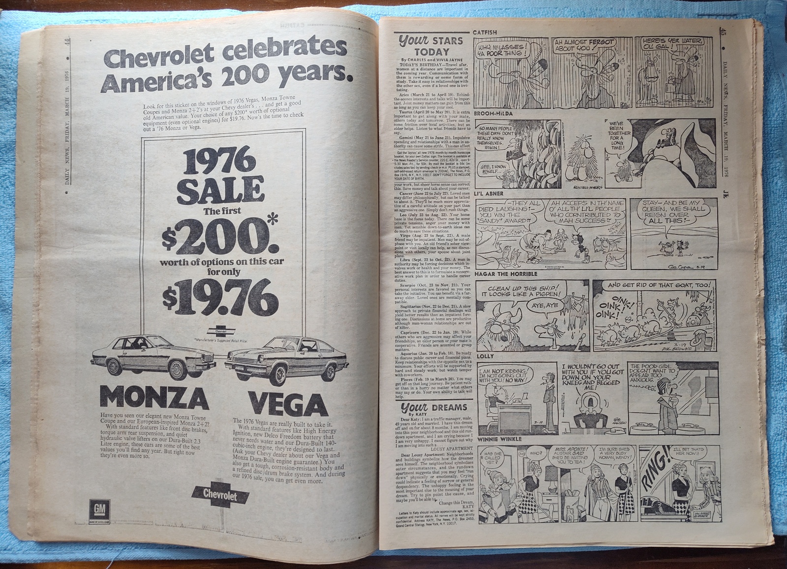 - Chevrolet has a full page ad for new Monza Towne Coupe and the Vega