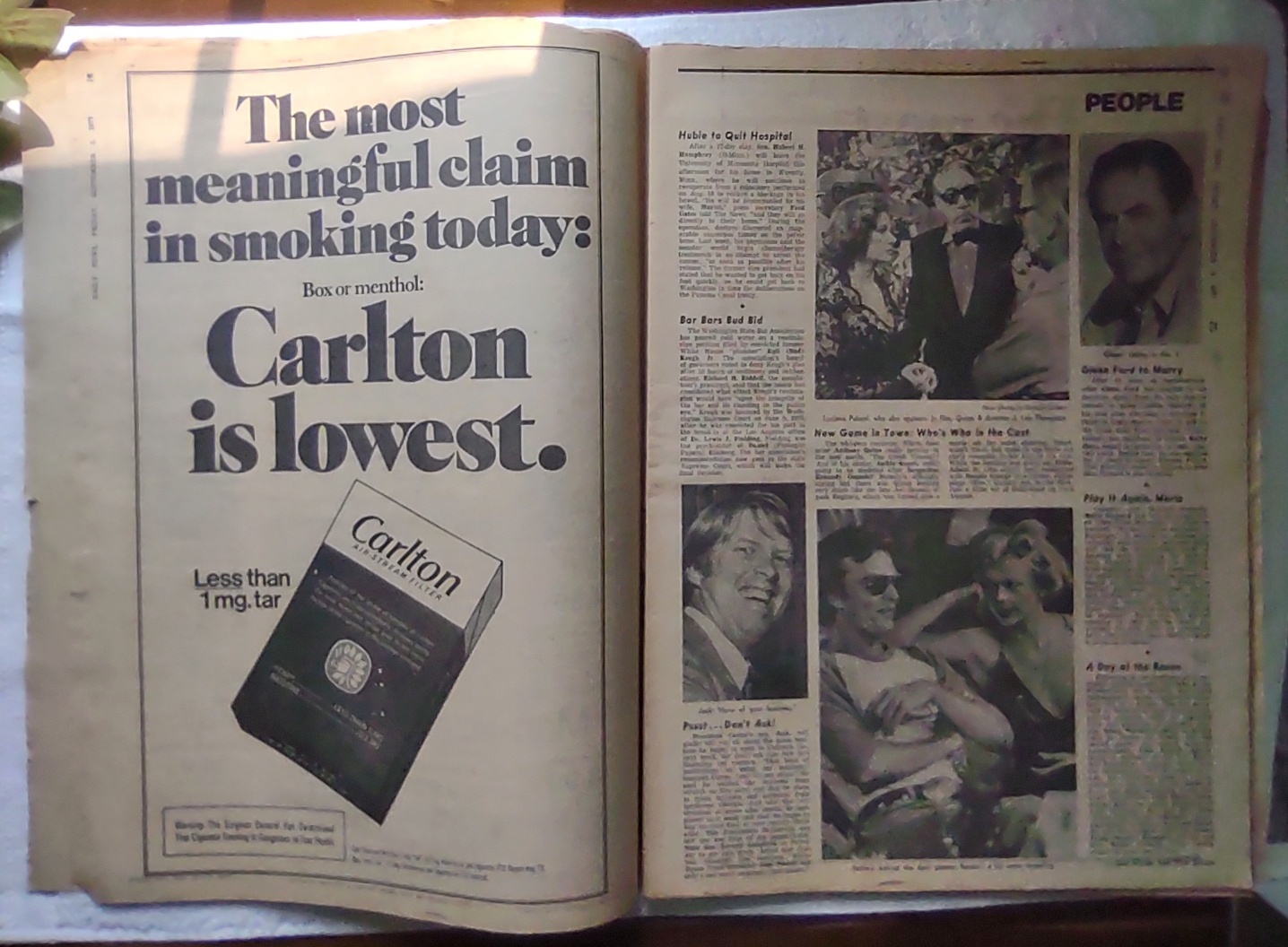 Good used condition for 40+ year old newspaper! Some minor discoloration, tears and wear around edges, all 72 pages (plus the Friday insert) are included. – LOOK AT THE PICTURES!