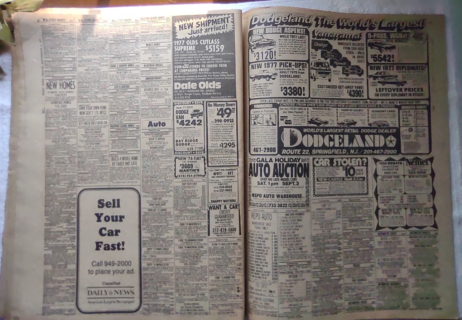 - A classified ad for a brand new 1977 Dodge Pickup for $3380