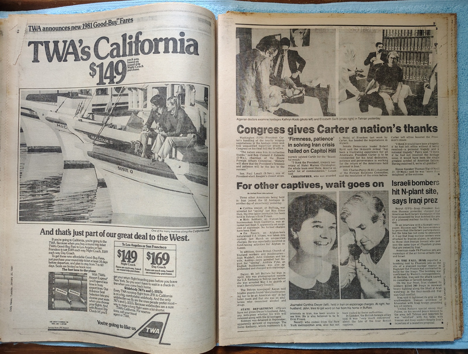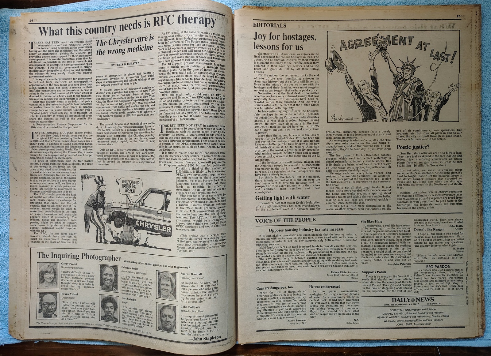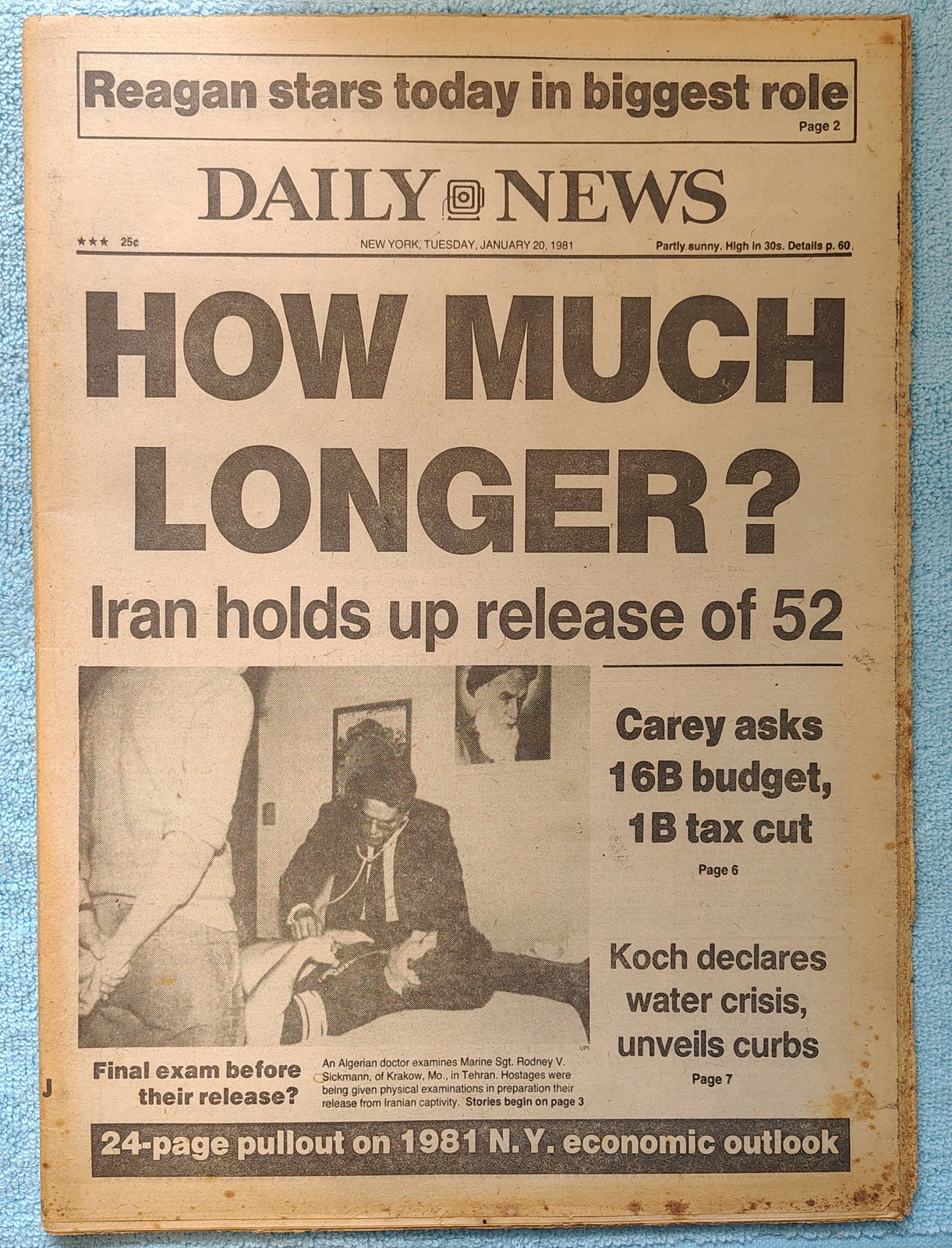 New York Daily News – Tuesday, January 20, 1981. The headline is: ‘How Much Longer?’ and ‘Iran holds up release of 52’ – What you see in the pictures is what you get.