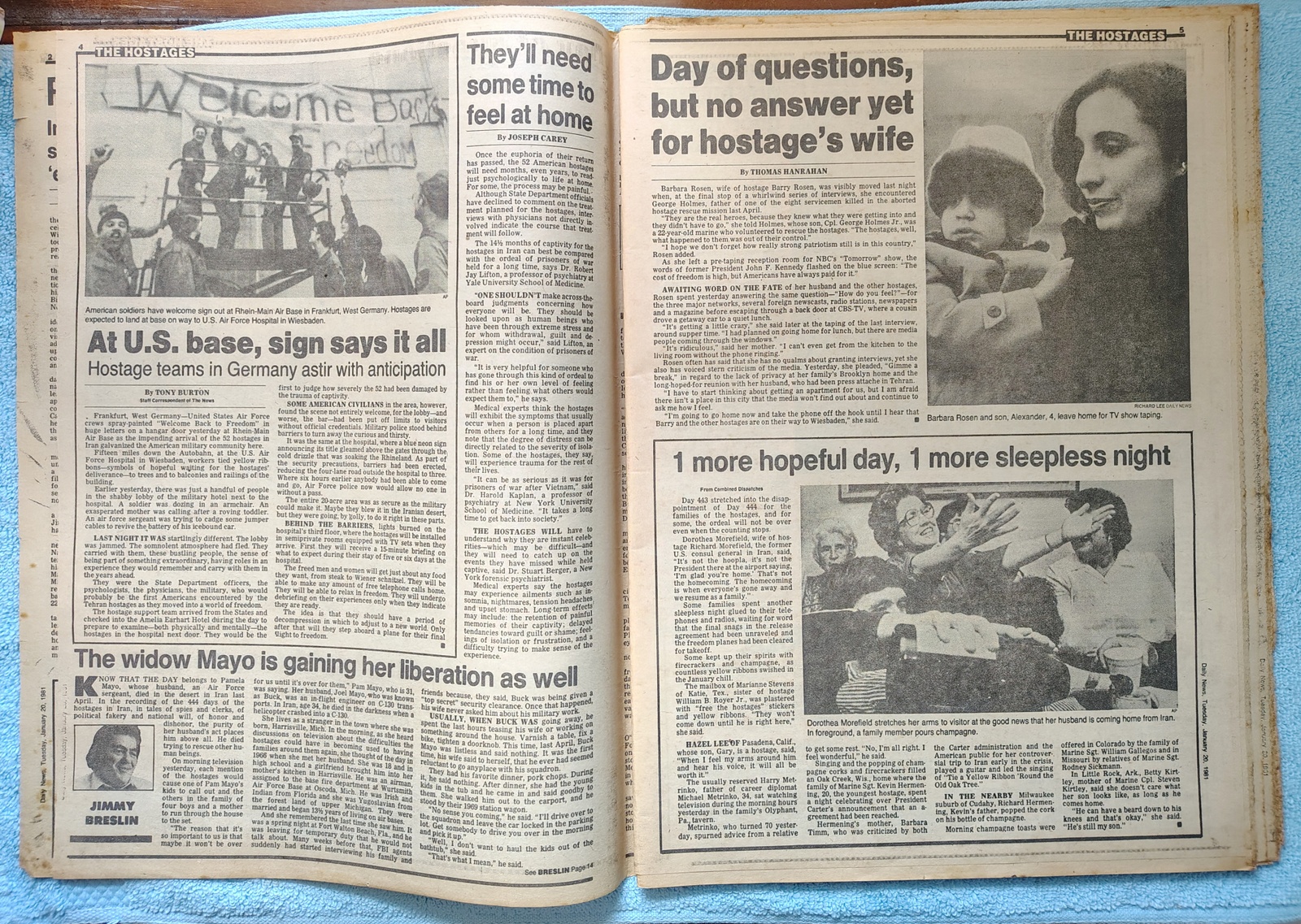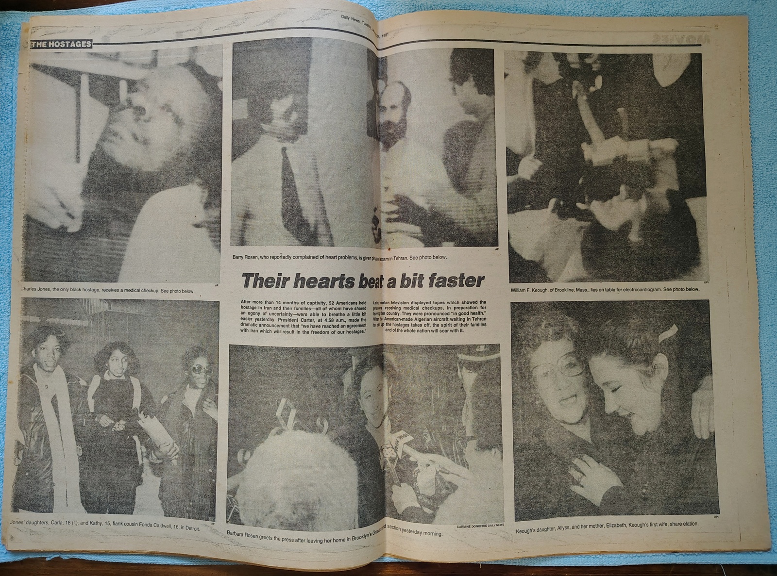 - The centerfold has pictures of some of the hostages getting medical evaluations and their loved ones reacting.