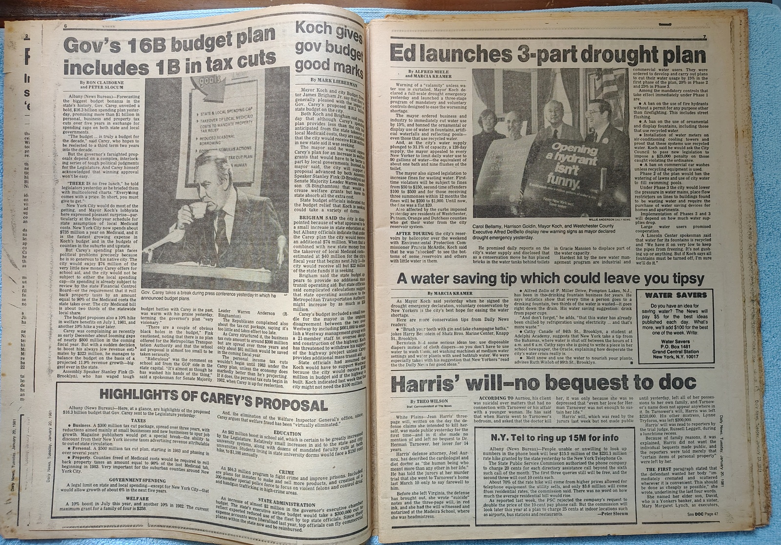 - ‘Ed launches 3-part drought plan’ – Mayor Koch of New York declares a drought emergency and launched a program of conserving water usage
