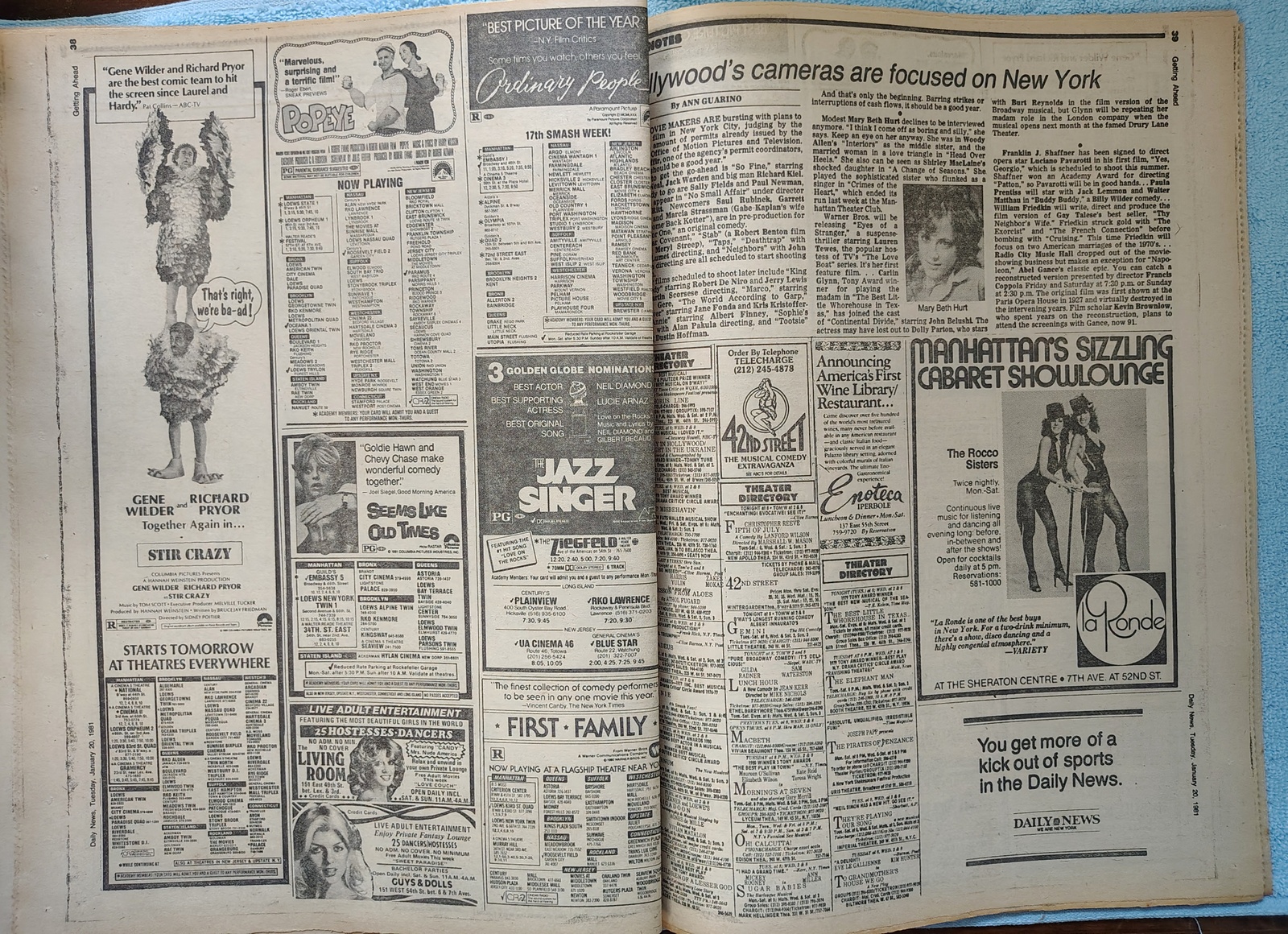 - Movie ads include: Any Which Way You Can, The Jazz Singer, Popeye (With Robin Williams), Raging Bull, Stir Crazy, Hangar 18, and more!