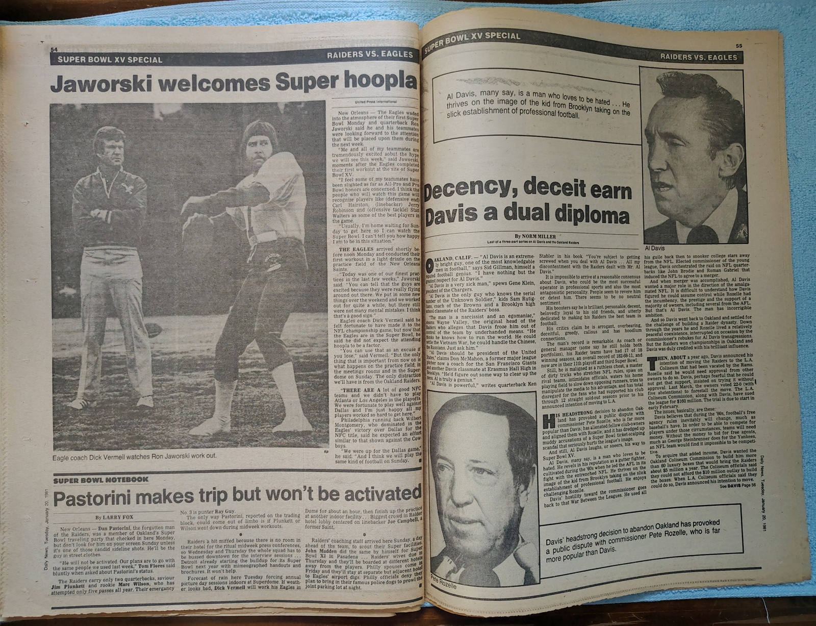 - ‘Jaworski welcomes Super hoopla’ – quarterback Ron Jaworski welcomes the hoopla that comes in the week leading up to the Super Bowl.