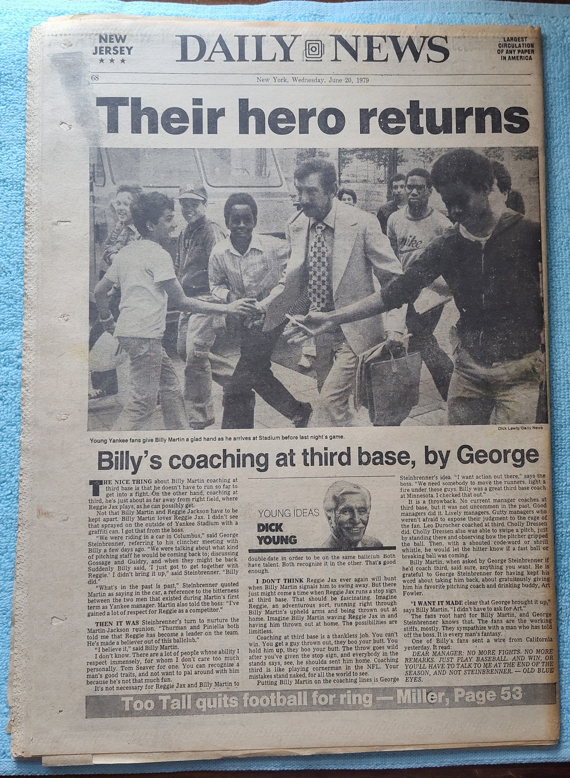 - The back page features a picture of Billy Martin returning to the Yankees among young fans.