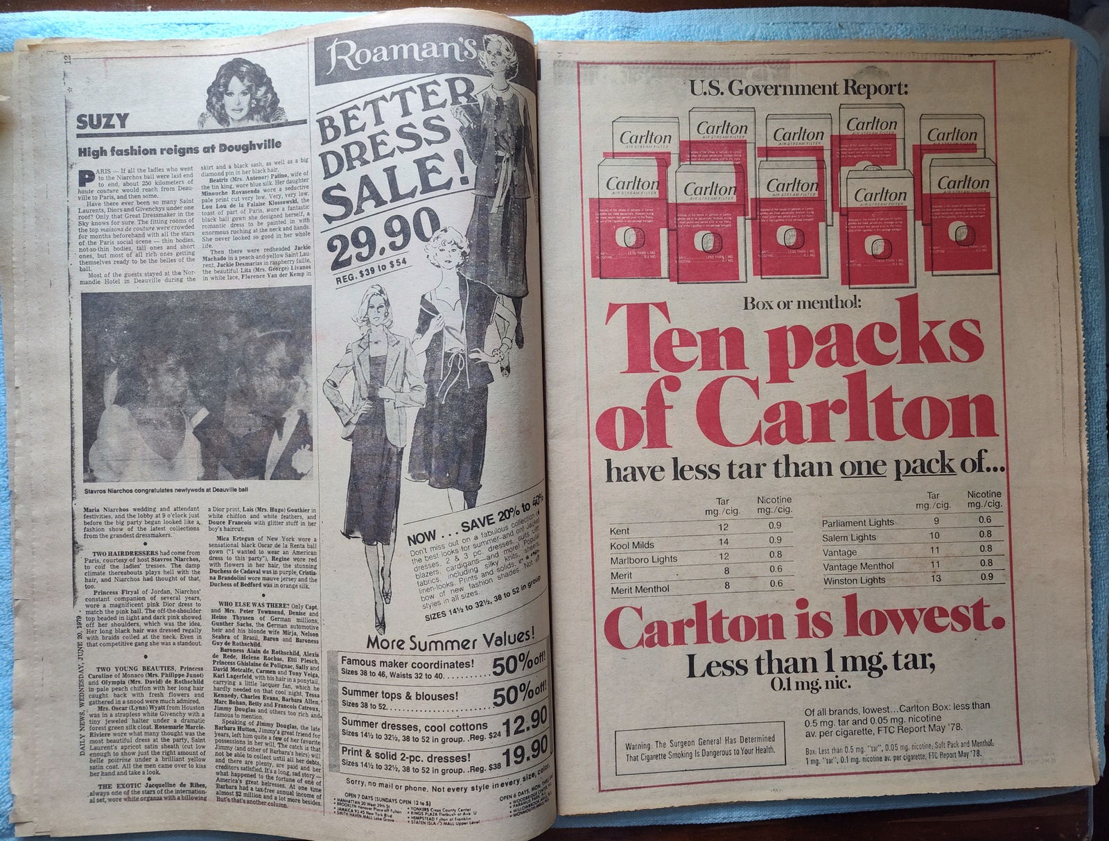 - Carlton cigarettes has an ad – one of only two pages in the paper with red ink.
