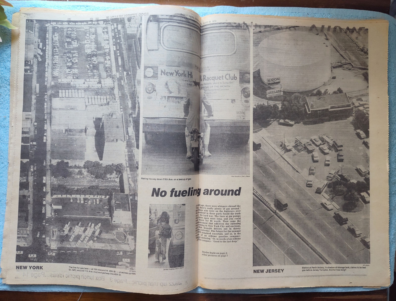 - ‘Gas line fuels new business’ – A few kids on bicycles earned some extra money running errands for folks waiting in gasoline lines – but they blew all their money later at the bowling alley. . .