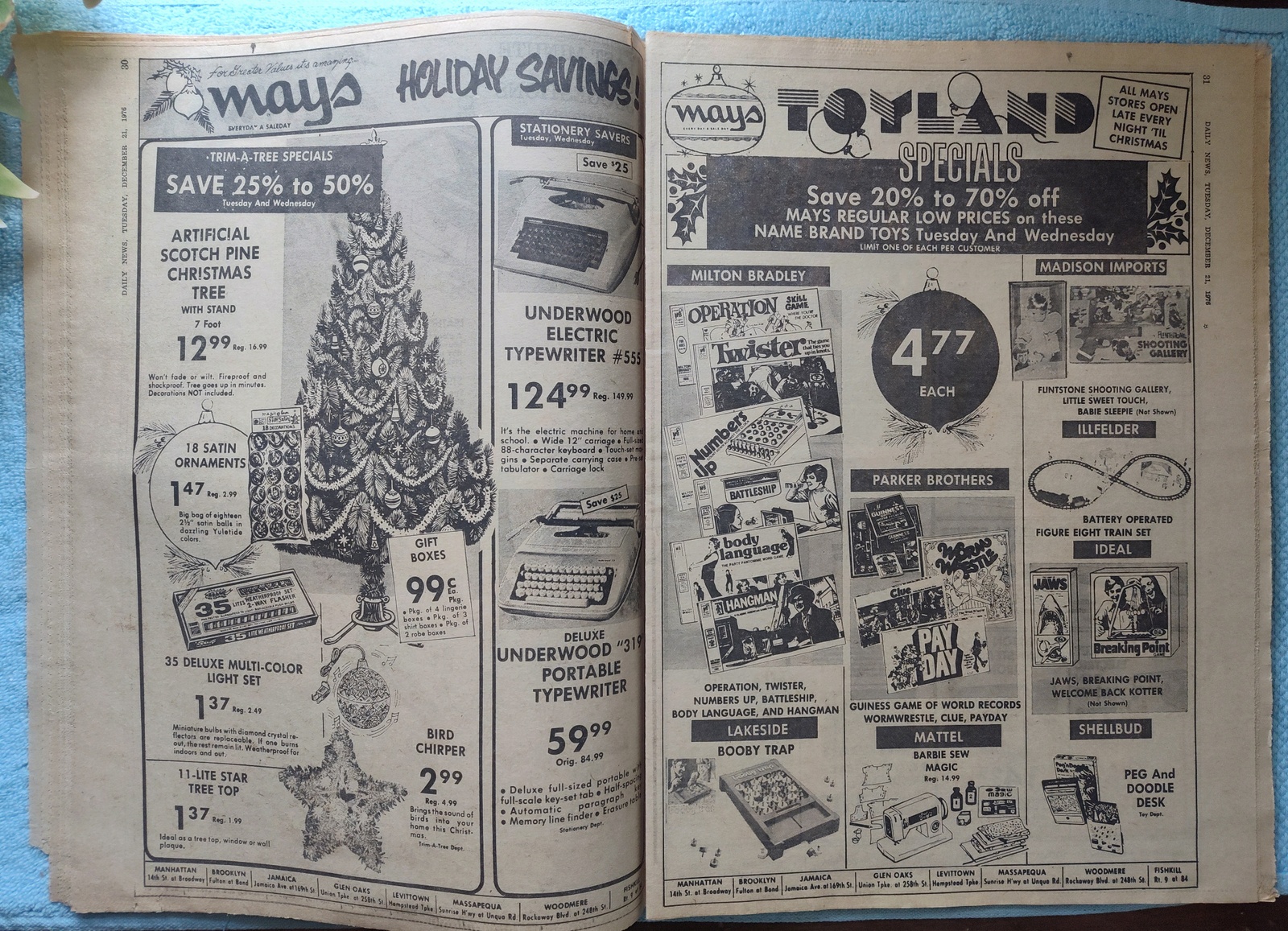 - Mays has Underwood typewriters on sale – electric and manual.