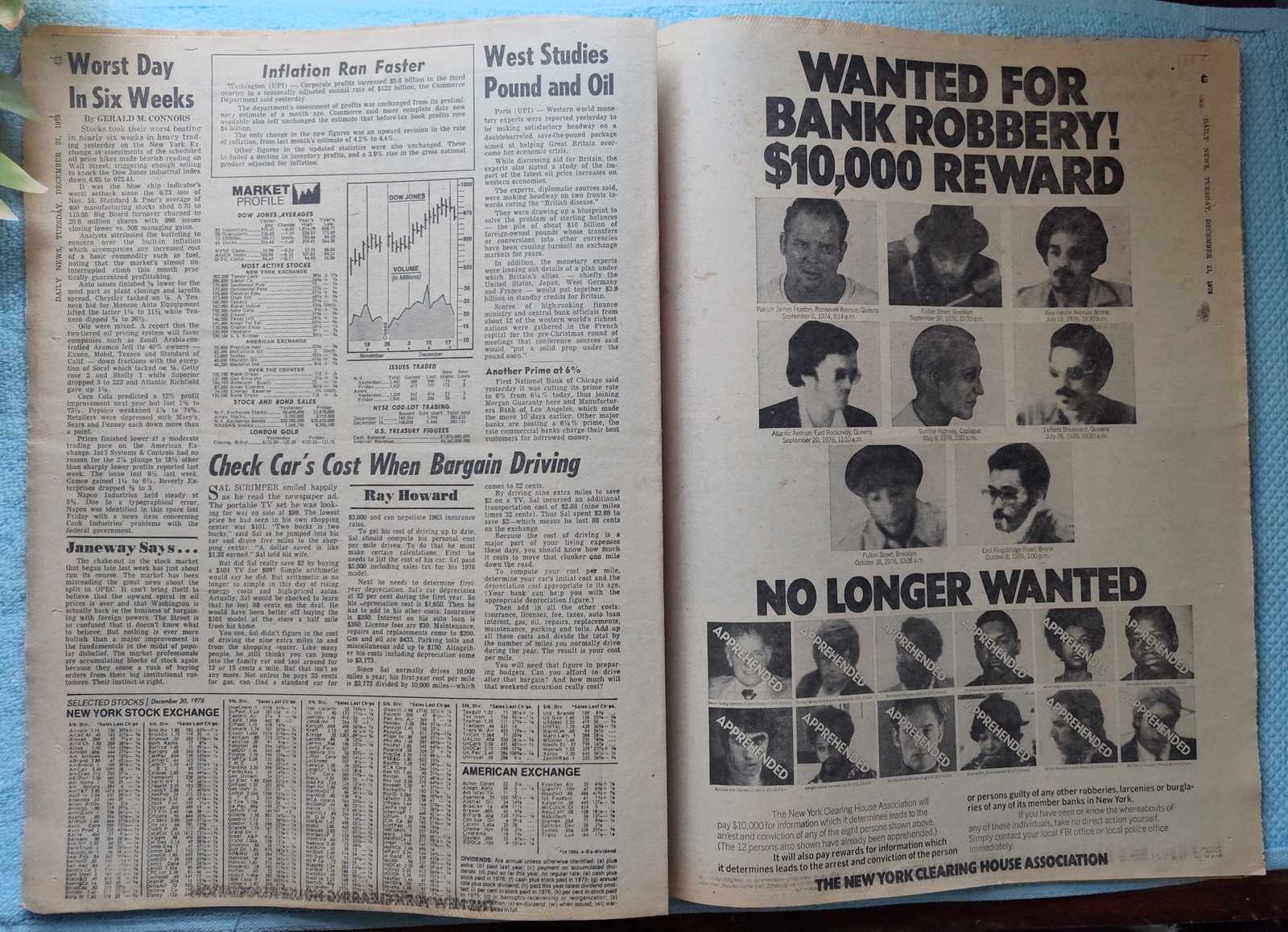 - The New York Clearing House Association has a full page ad for 8 of their most wanted bank robbers – $10,000 Reward