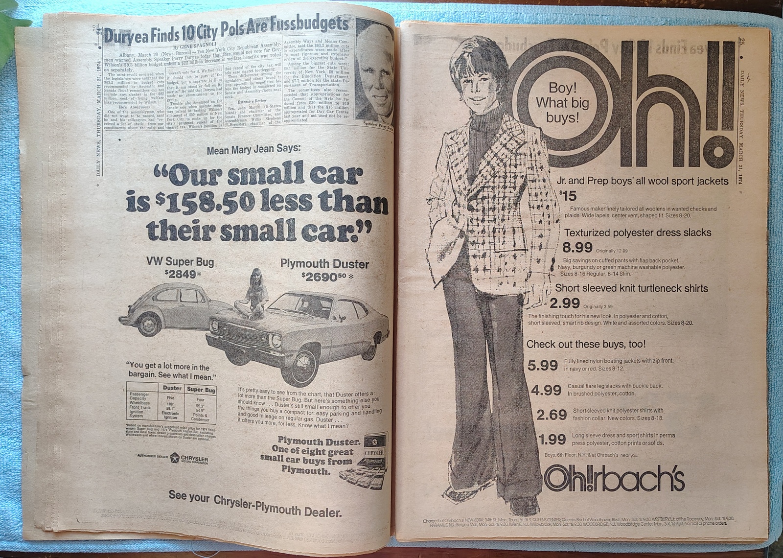 - You can buy the new Plymouth Duster for $158.50 less than a Volkswagen Super Bug.