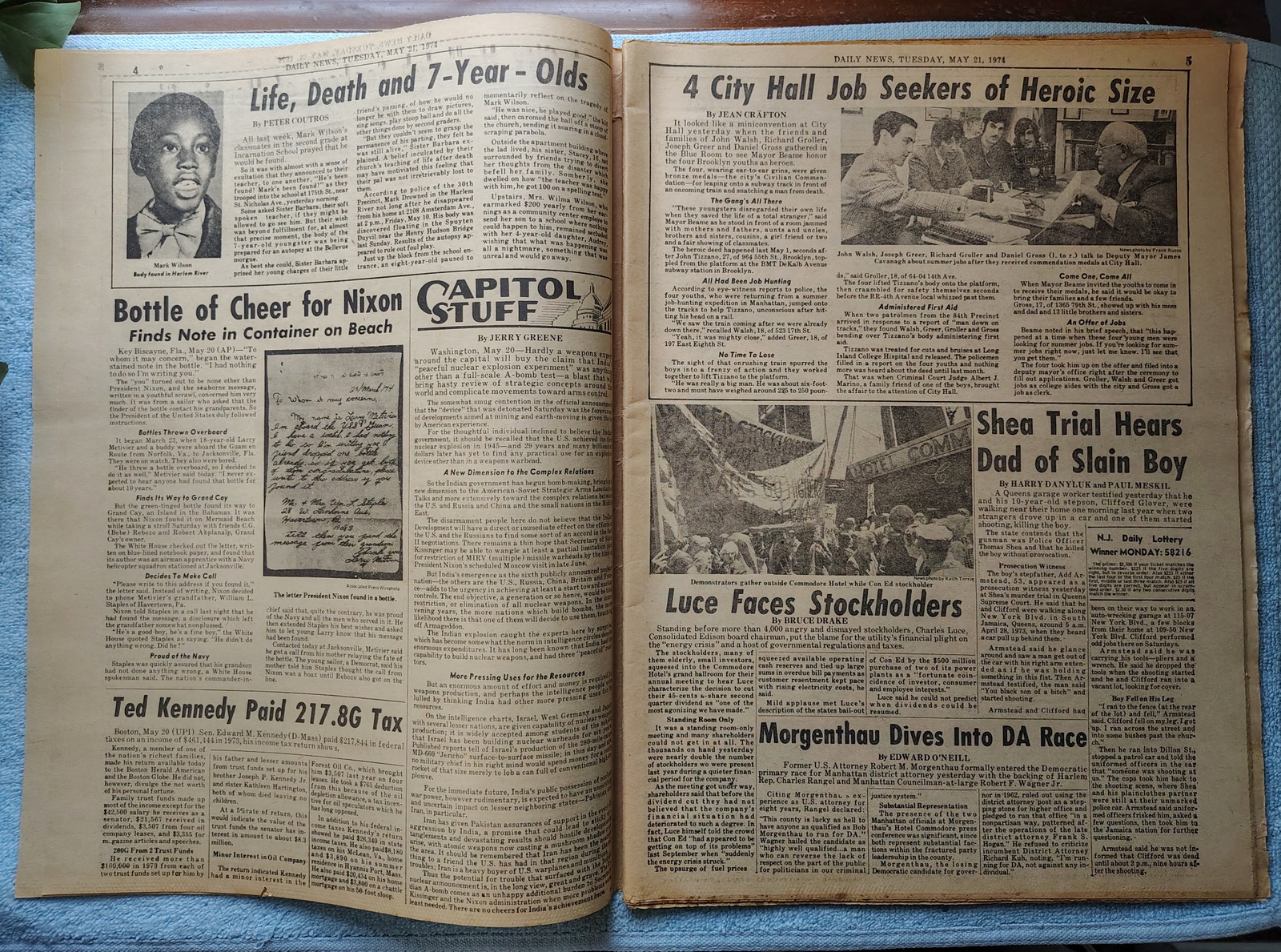 - ‘Life, Death and 7-Year-Olds’ – The body of 7 year old Mark Wilson was found in the Harlem River.