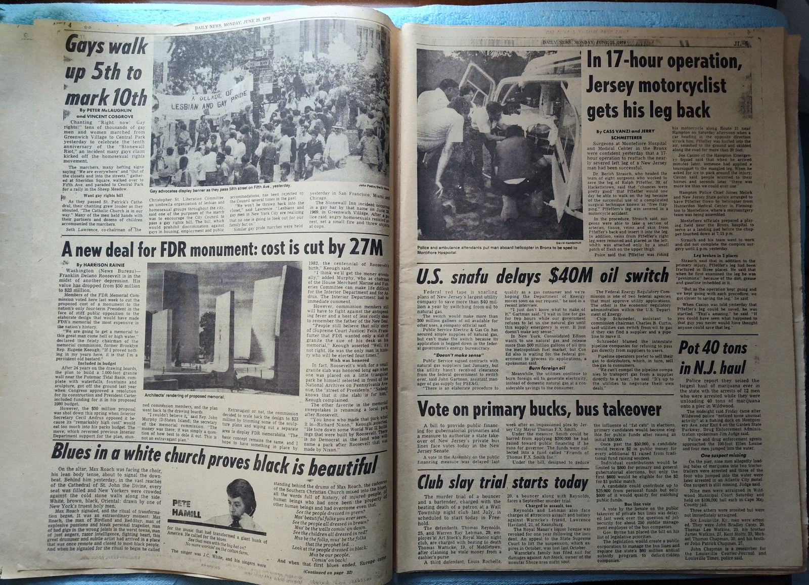 - ‘Gays walk up 5th to mark 10th’ – ‘tens of thousands of gay men and women marched from Greenwich Village to Central Park yesterday to celebrate the tenth anniversary of the “Stonewall Riot”