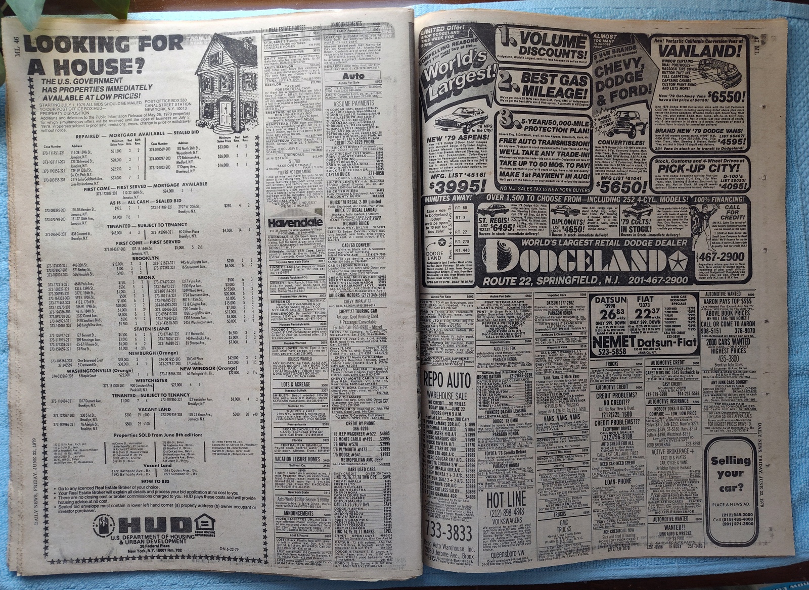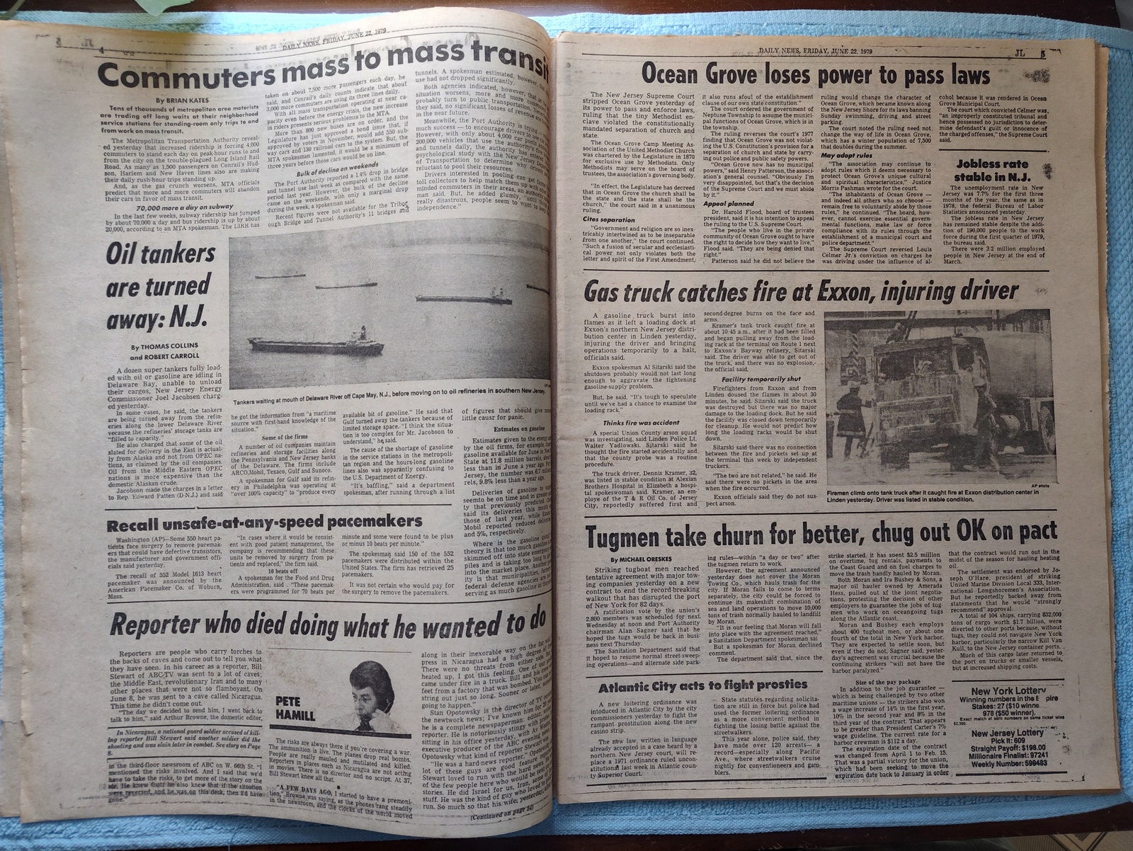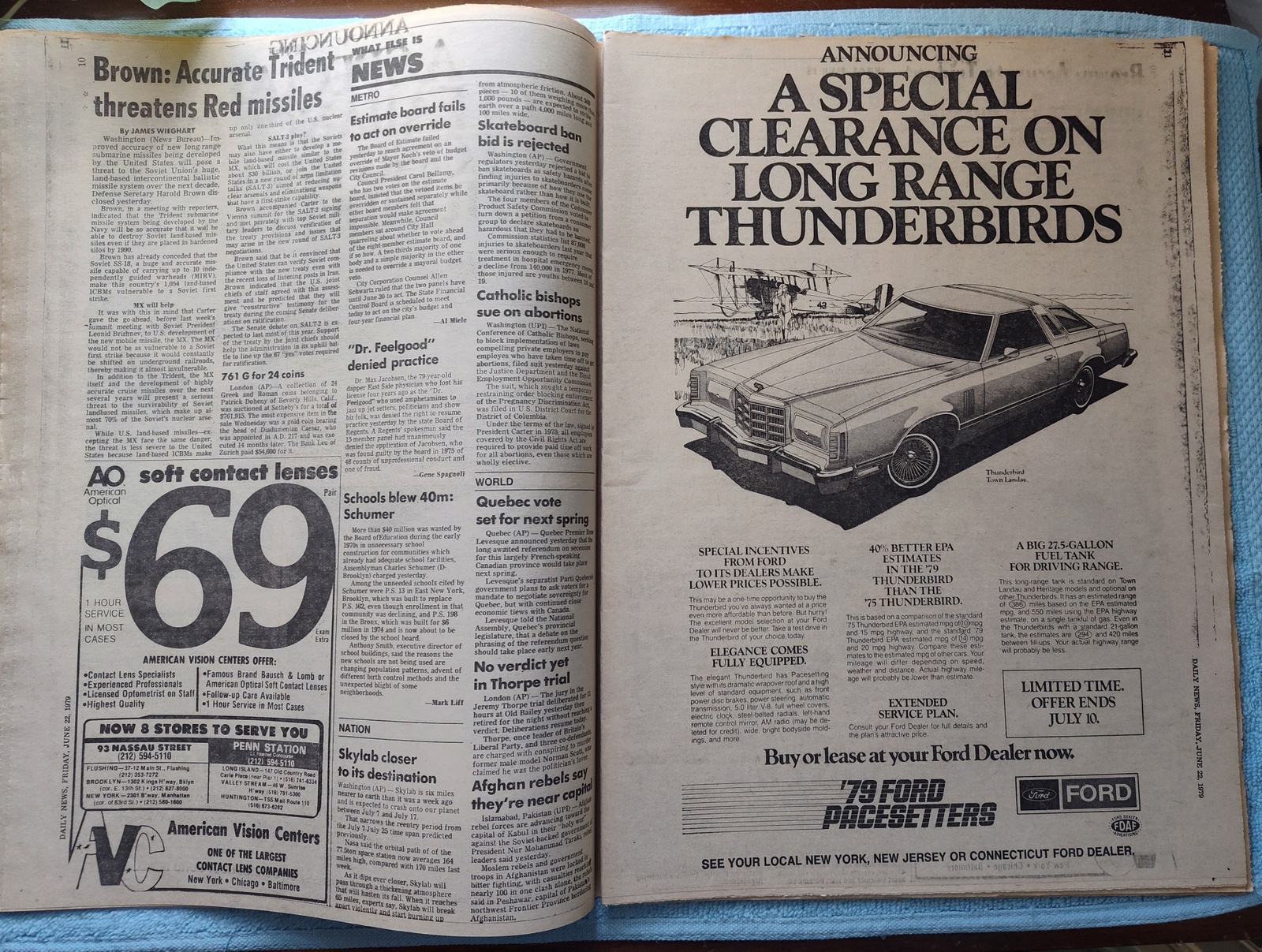 New York Daily News – Friday, June 22, 1979. This old newspaper features on the front page a picture of President Carter talking with Democratic rival Sen. Edward M. Kennedy. The headline is: ‘Weekend Gas Outlook: Bleak’ and ‘Boot Somoza regime, U.S. asks’ – What you see in the pictures is what you get.