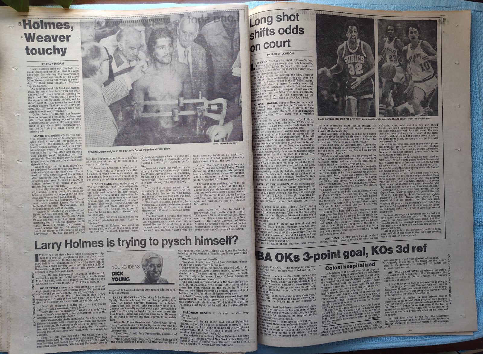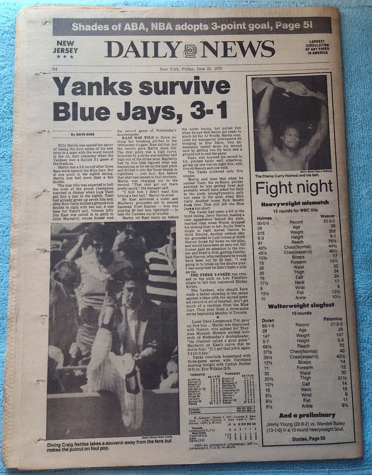 - The back page features pictures of Craig Nettles diving for the catch and Larry Holmes with his belt.