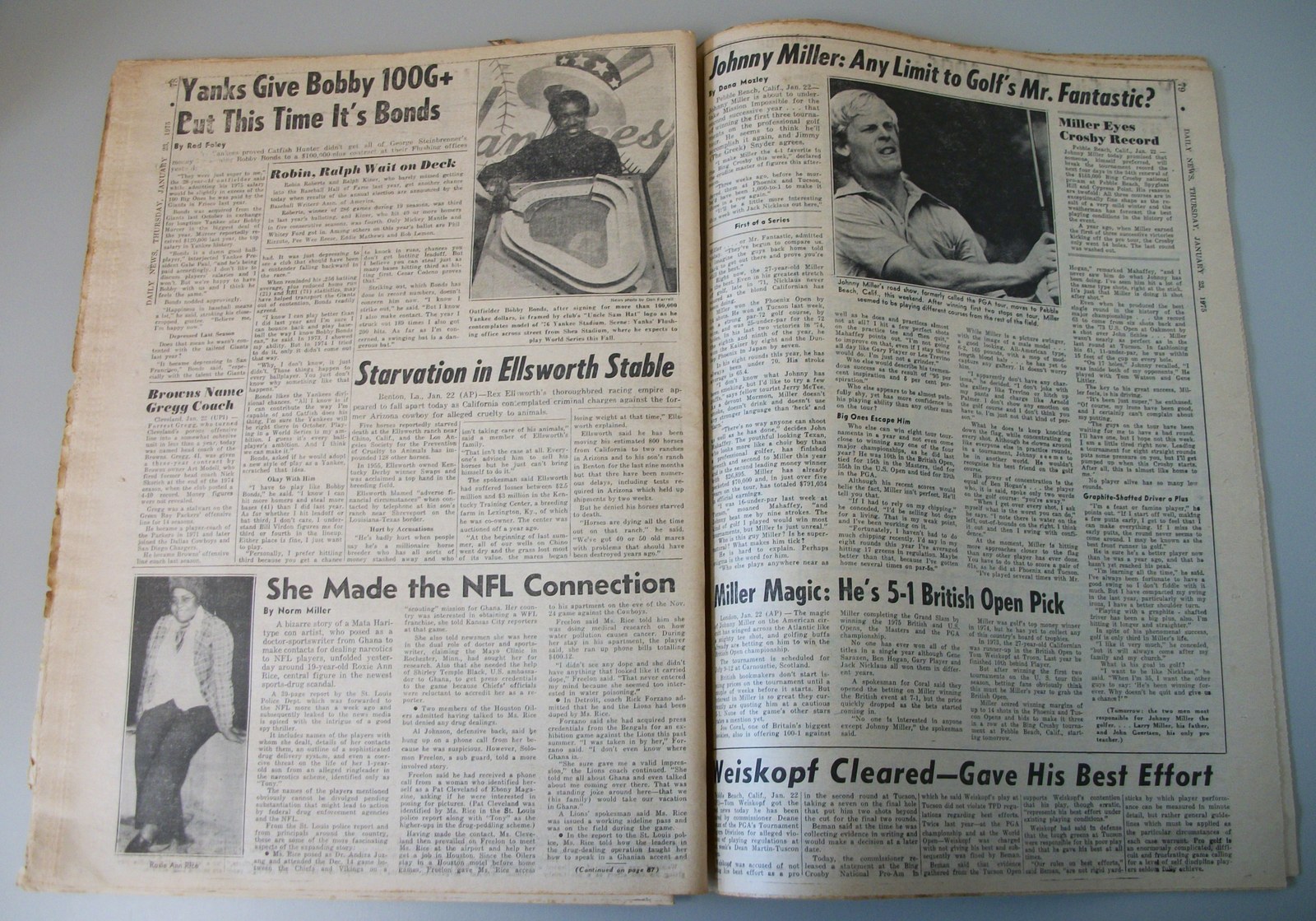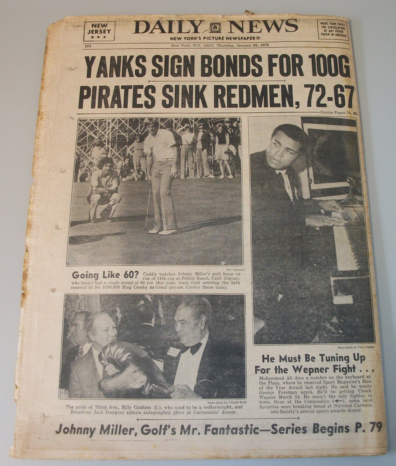 - The back page features a picture of Muhammad Ali playing the piano and golfer Johnny Miller