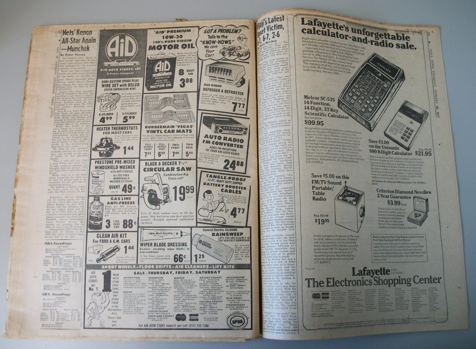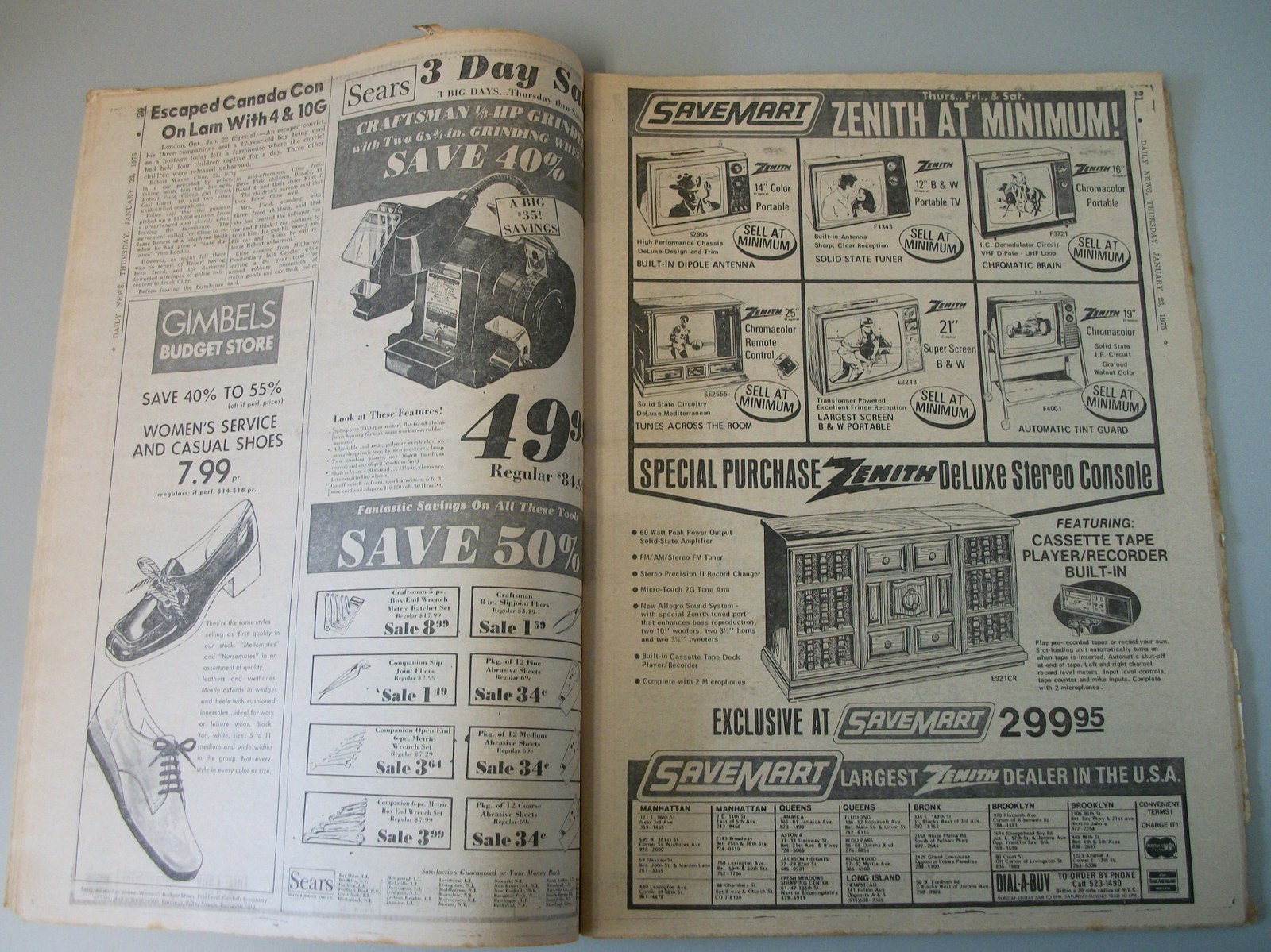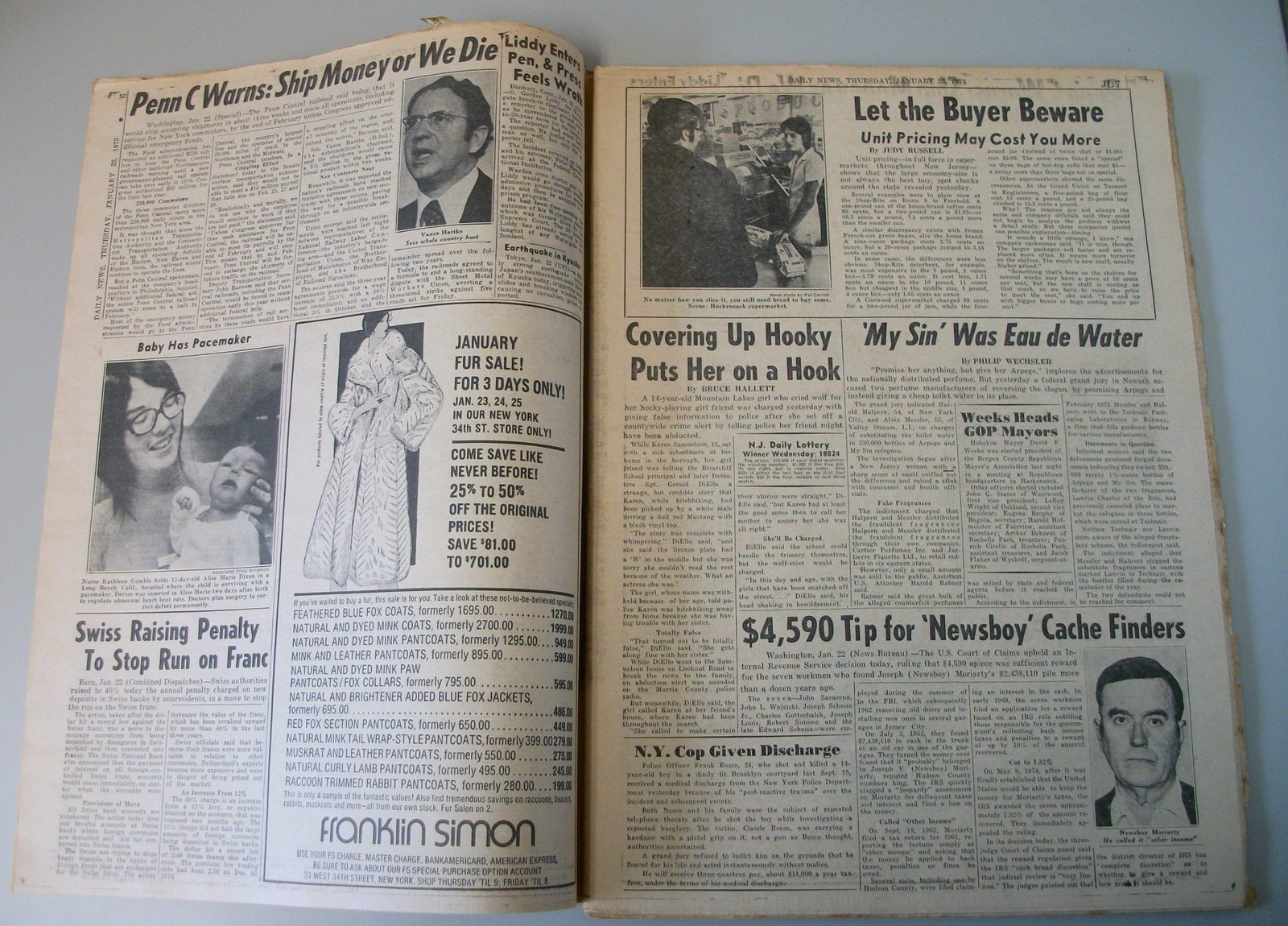 New York Daily News – Thursday January 23, 1975 What you see in the pictures is what you get: all 104 pages are included.. There are some minor tears and wear around the edges – LOOK AT THE PICTURES! This is a very interesting old newspaper which features as the front page story: MRS. KALLINGER PLEADS FOR SON – ‘Not a Bad Boy,’ Says Mother – the court denying the release of serial killer Joseph Kallinger’s son, Michael Kallinger (13); Some of the contents include: