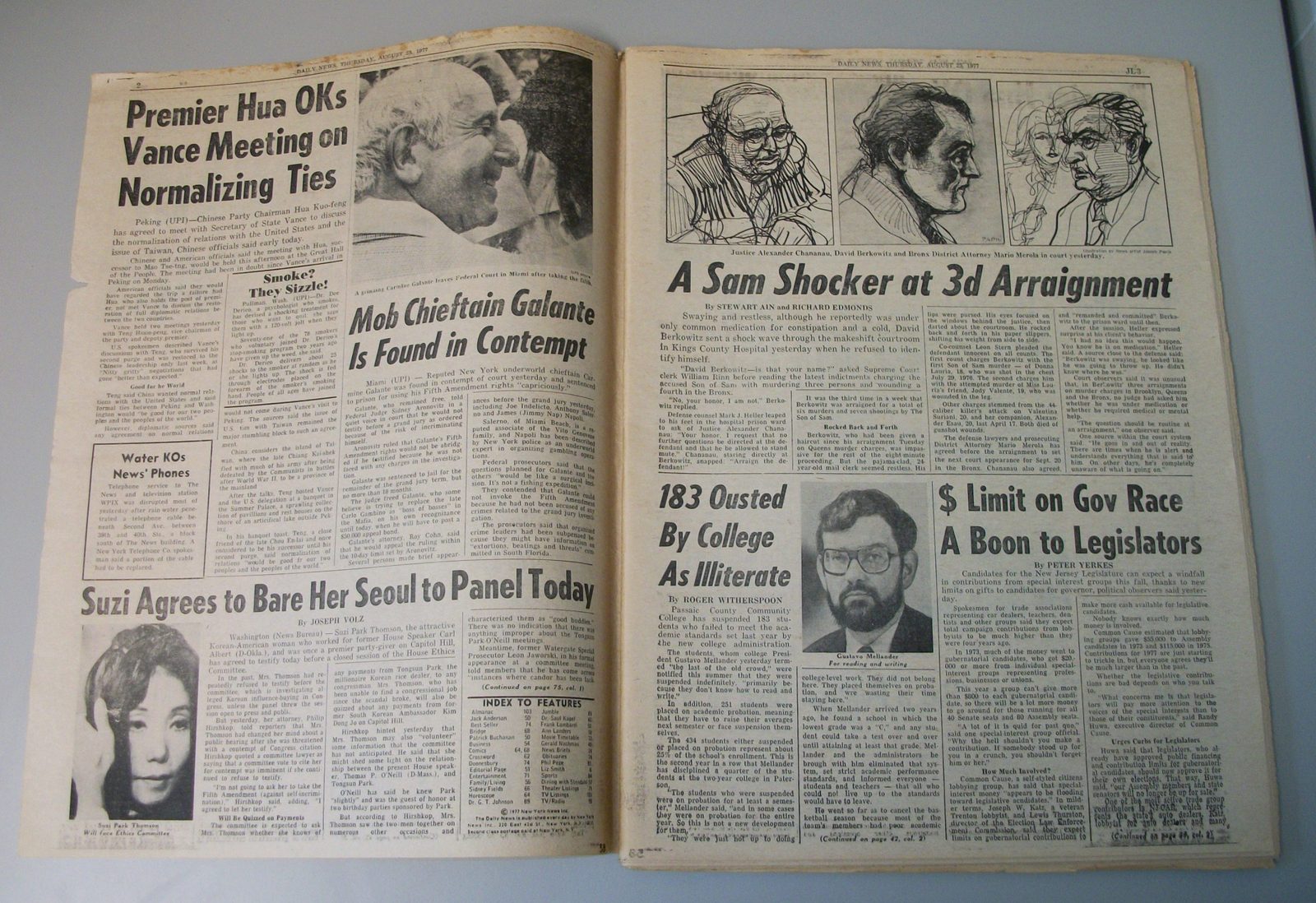 - Coverage and articles about the the Son of Sam – David Berkowitz’s court proceedings – Front Page, Page 3