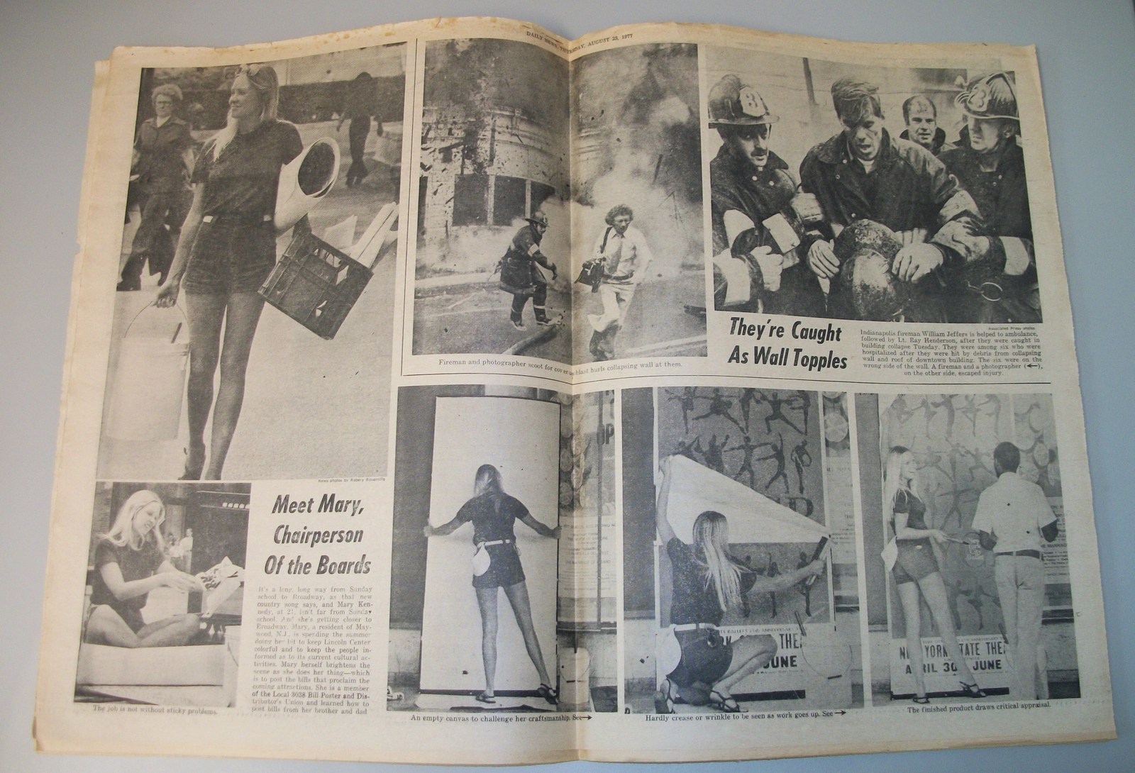 - The centerfold has pictures of Mary Kennedy, bill poster and pictures of a building collapse in Indianapolis