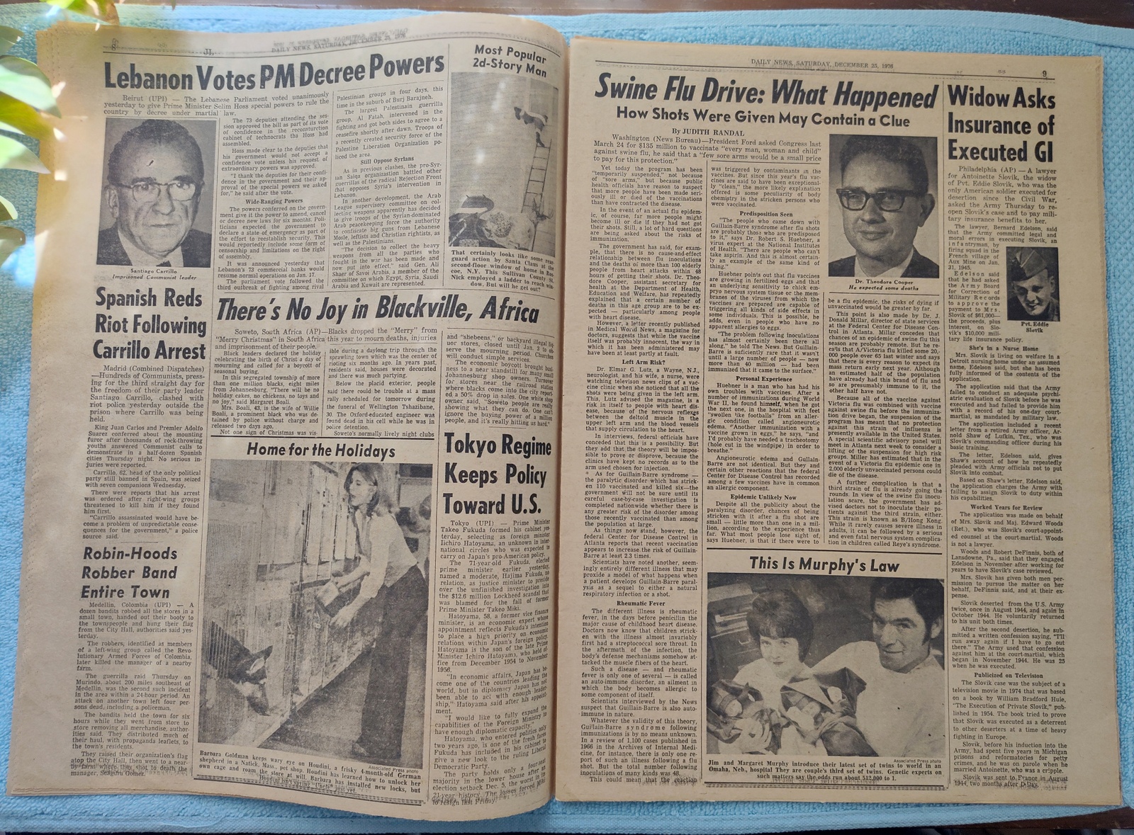 - ‘An Off-White Christmas For a Ski-Injured Ford’ – President Ford forgoes skiing after falling and bruising his hip.