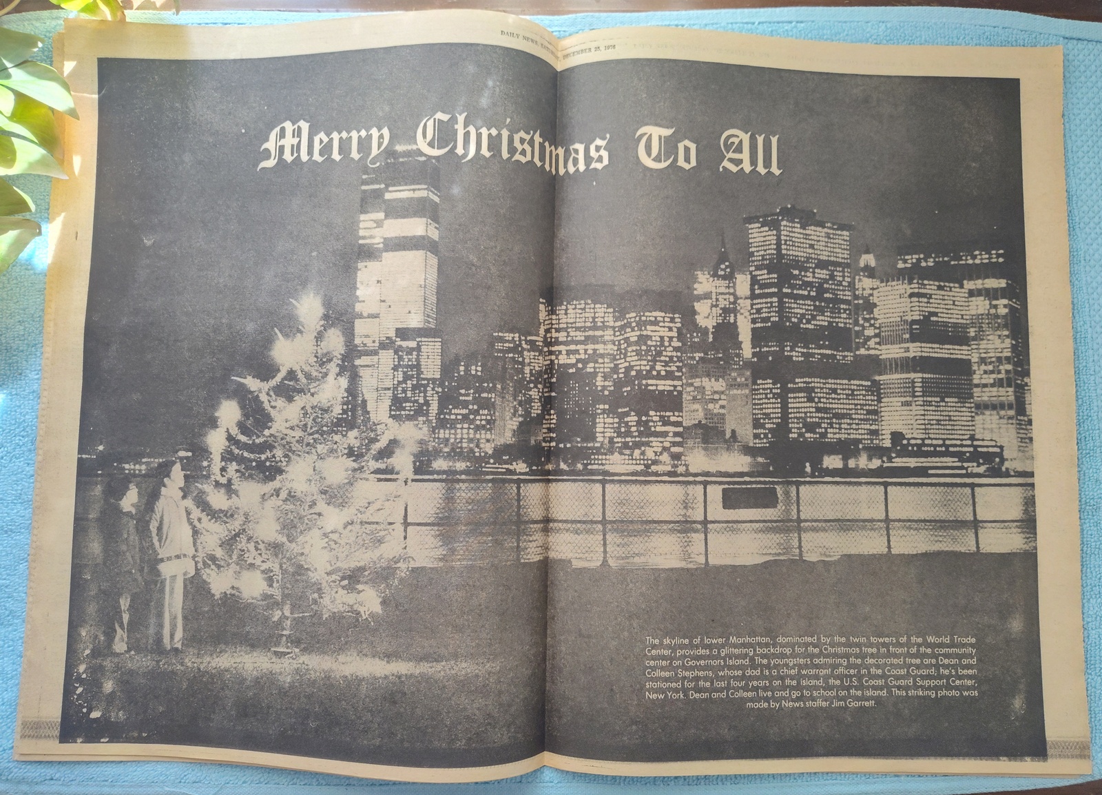 - The centerfold has a picture of the lower Manhattan skyline at night with a couple of kids beside a Christmas tree on Governors island.
