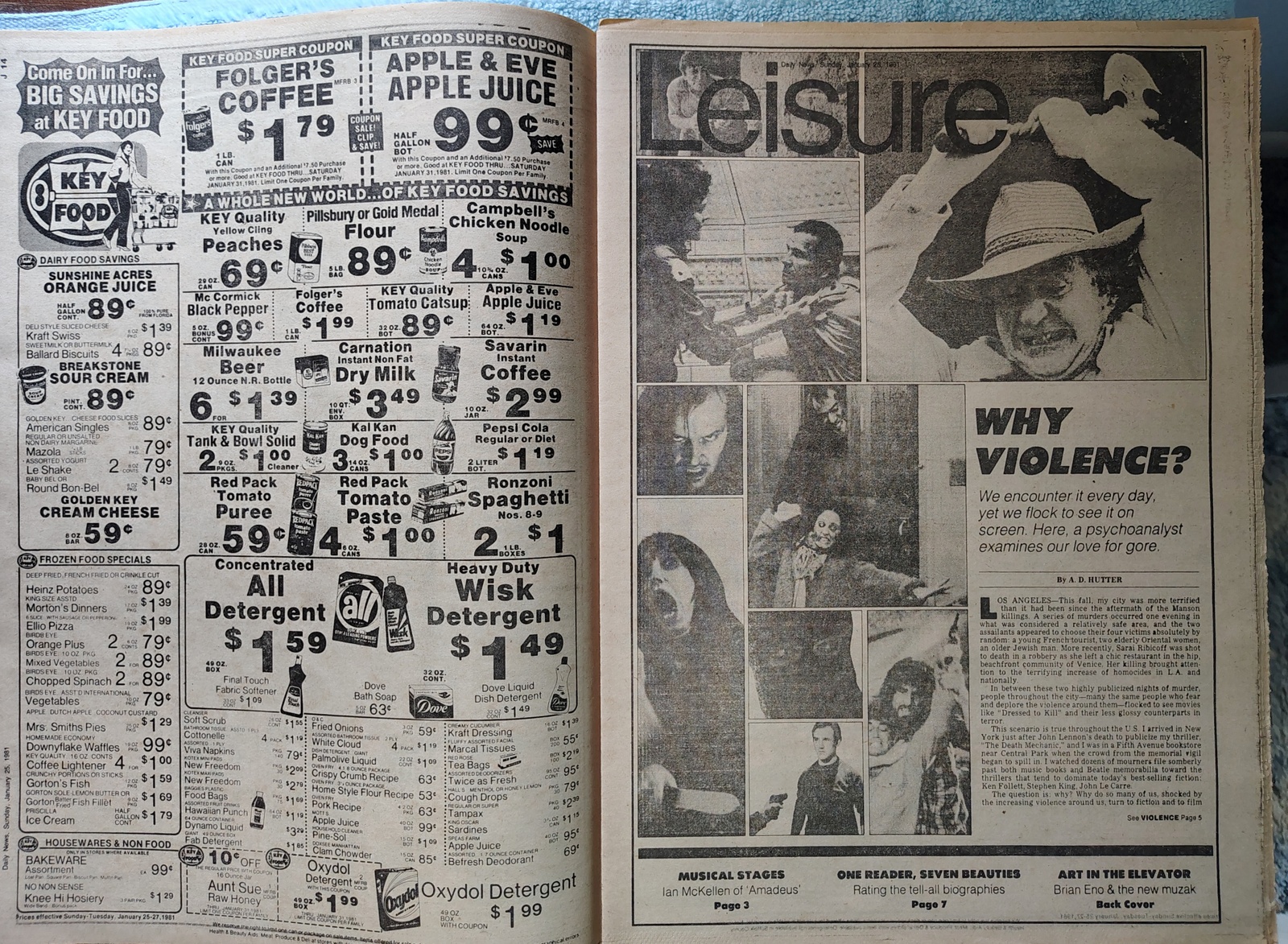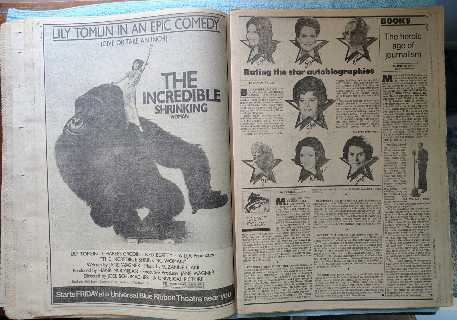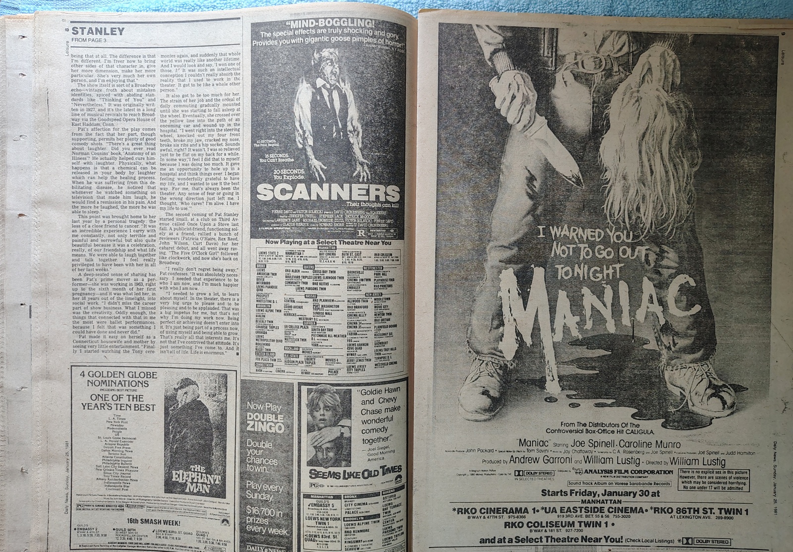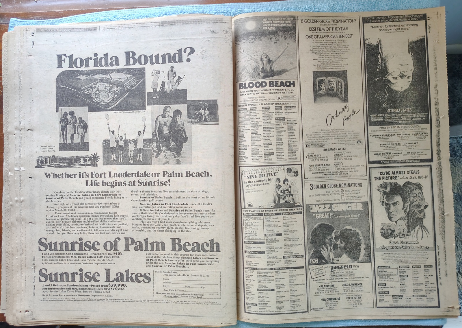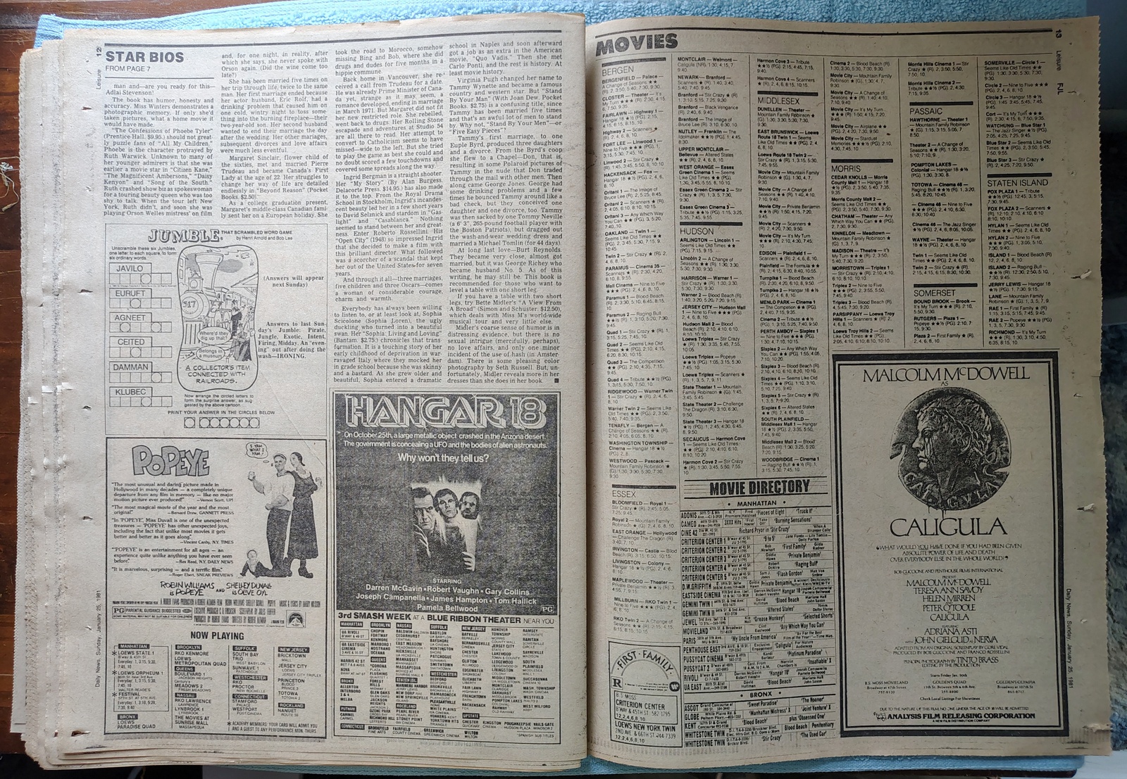 - Movie ads include: Tribute, The Incredible Shrinking Woman, Maniac, Stir Crazy, Blood Beach, Popeye (With Robin Williams), Any Which Way You Can, Raging Bull, The Elephant Man, and more!