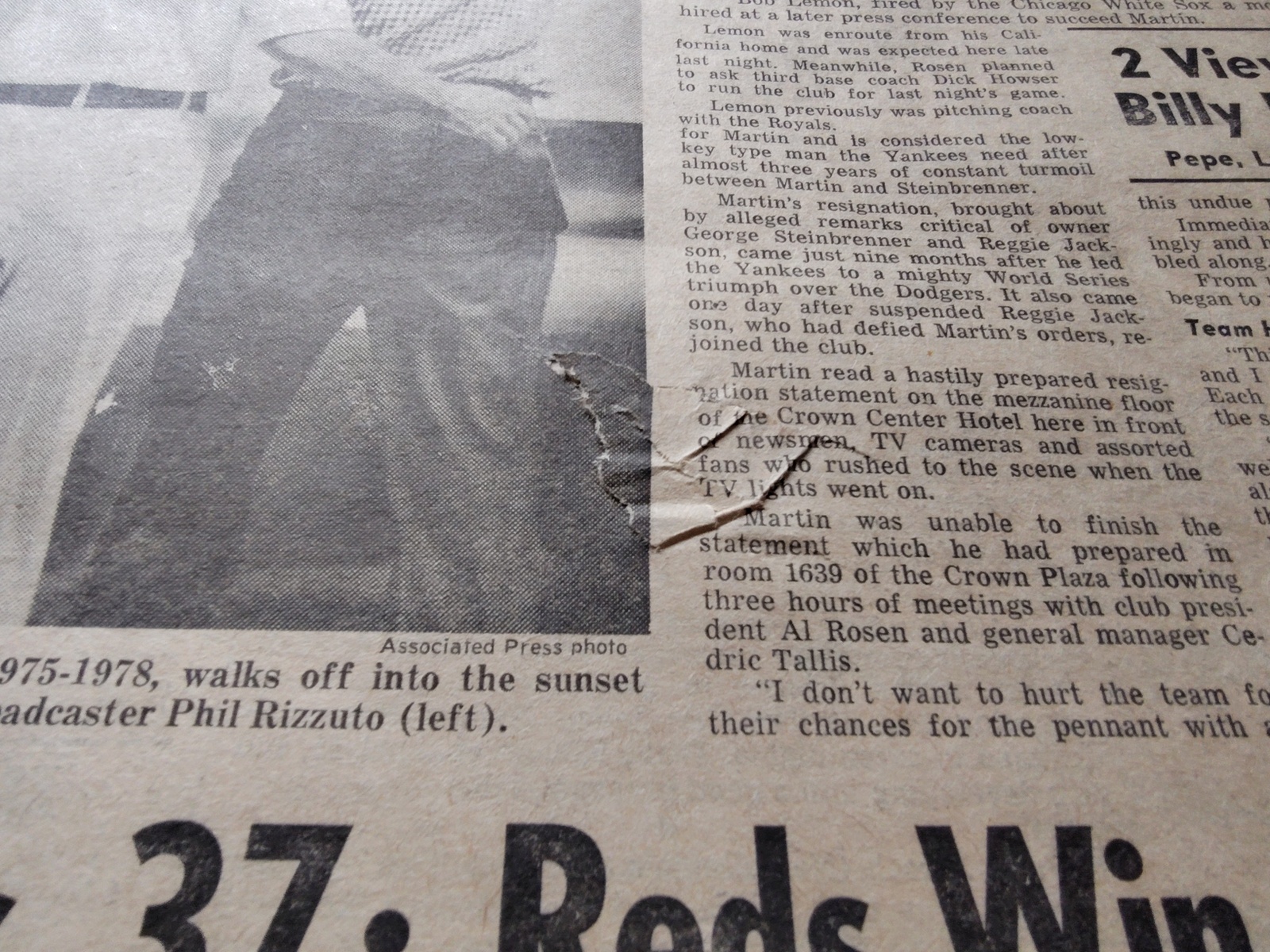 - The sports section has coverage of Billy Martin’s resignation.