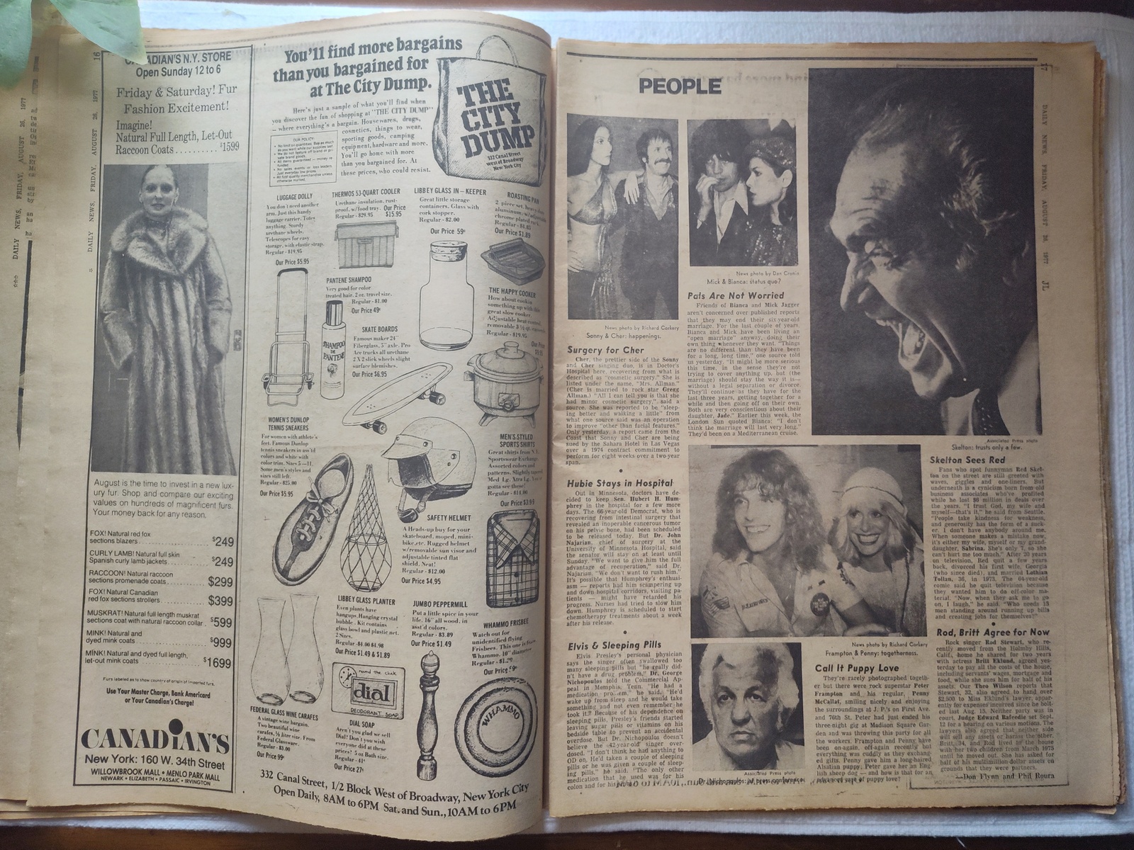 - Pictures of Sonny & Cher, Red Skelton yelling, Peter Frampton and Penny McCallat, and Elvis’ doctor: George Nichopoulos