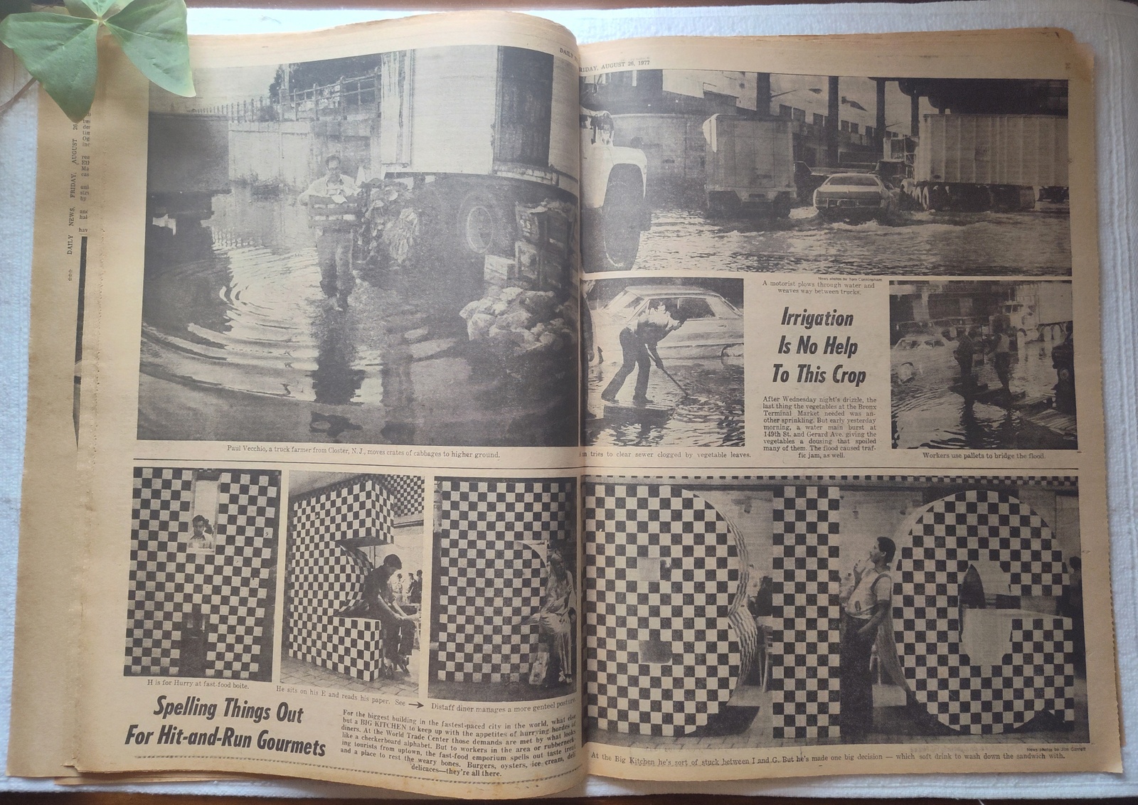 - The centerfold has pictures of Flooding at the Bronx Terminal Market due to a burst water main, and pictures of big letters at the Big Kitchen at the World Trade Center