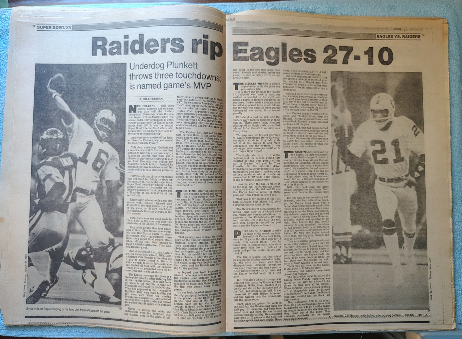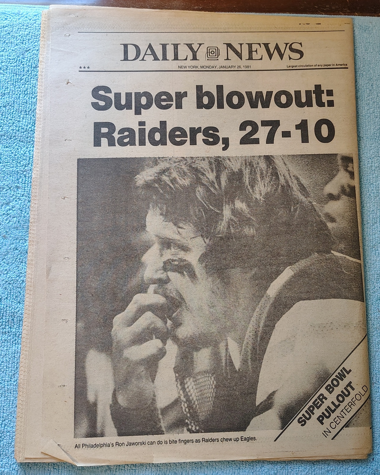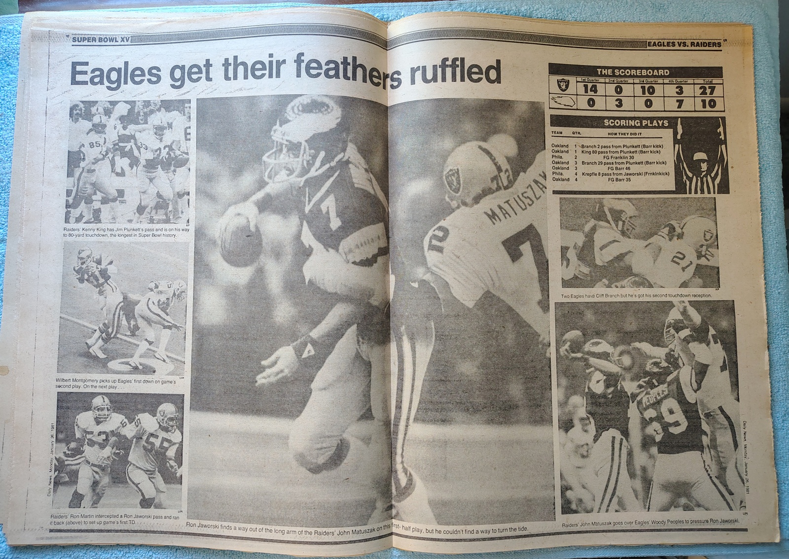 - The back page features a picture of Ron Jaworski biting his fingernails as his team loses the Super Bowl.