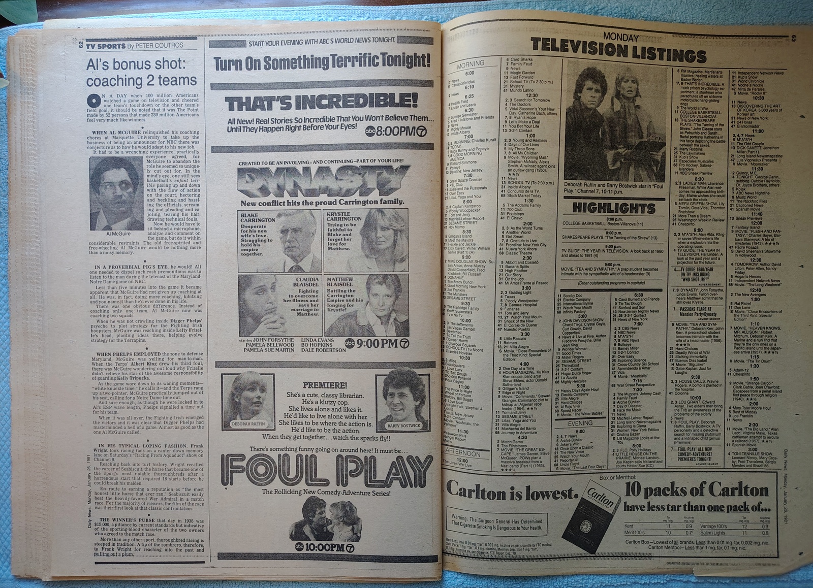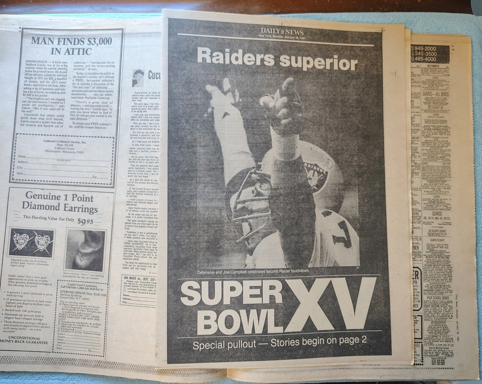 Excellent condition for a newspaper from 1981! Some minor discoloration, wear and tear around the edges and spine. All 64 pages are included plus the Super Bowl pullout, First Person insert, and the New Jersey Metro Insert – LOOK AT THE PICTURES!